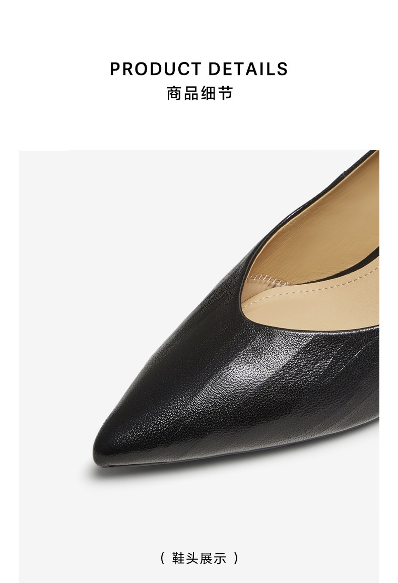 | 鞋头款式:尖头 | 鞋底材质:橡胶底 | 鞋面图案:纯色 | 内增高:无 | 鞋跟形状:细跟 |