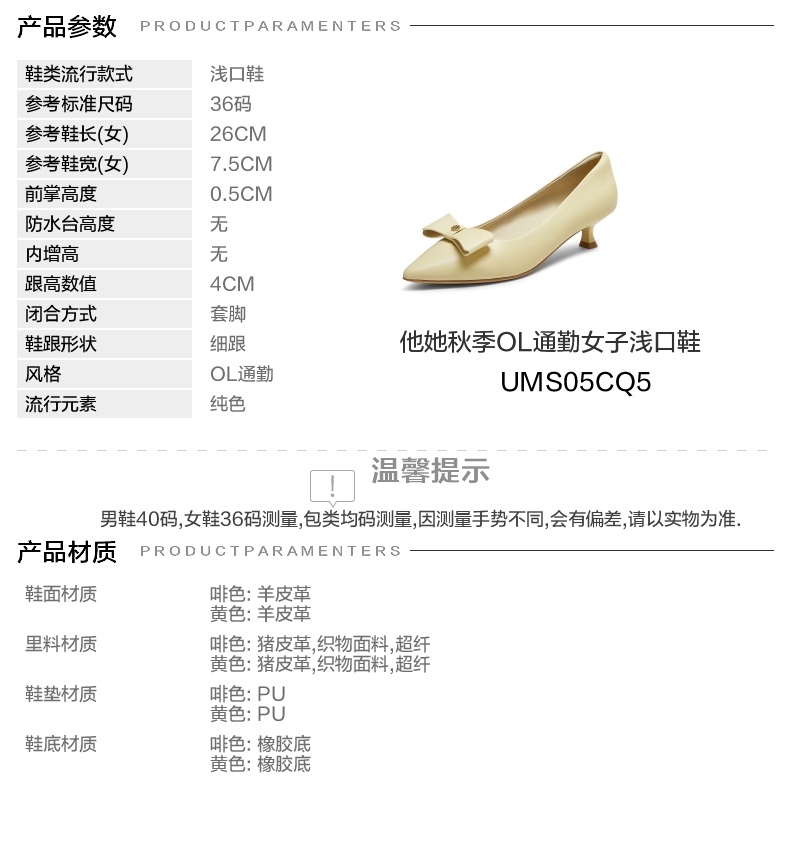 | 风格:OL通勤 | 跟高数值:4CM | 色系:黄色 | 配跟:有 | 性别:女子 |