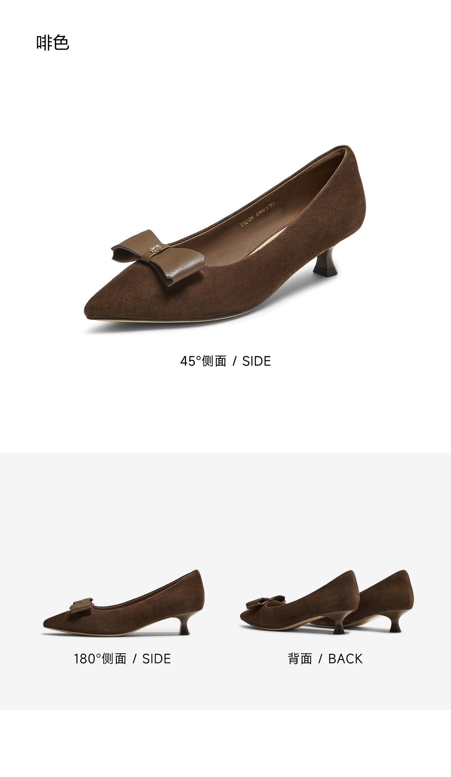 | 鞋头款式:尖头 | 鞋底材质:橡胶底 | 鞋面图案:纯色 | 内增高:无 | 鞋跟形状:细跟 |