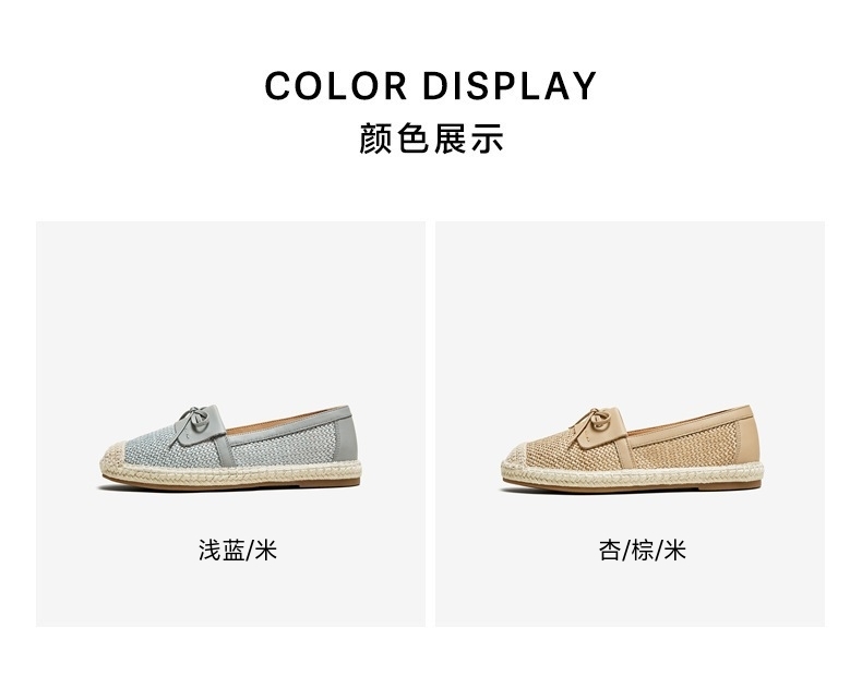 | 配跟:有 | 上市时间:2025年春季 | 鞋类流行款式:渔夫鞋 | 鞋头款式:圆头 | 鞋面图案:拼色 |
