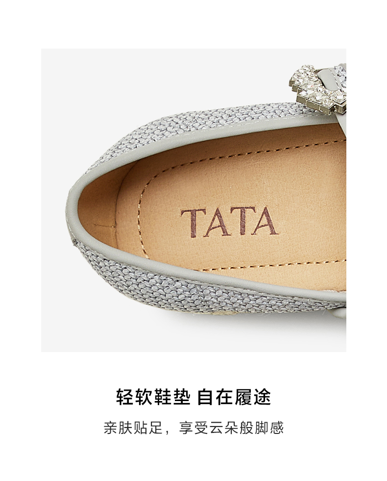 他她(Tata),品牌成立于2003年,致力为都市年轻人群提供时尚潮流、具有性价比的鞋履产品。十五年来“踏踏”的着地声,寓意都市白领元气满满的生活,如时尚“伴履”的TATA一直陪伴左右、伴随走出TATA的时尚步伐。2017年TATA美丽蜕变,TATA STAR元素的加入预示品牌将成为闪亮、前端的时尚鞋履品牌。
