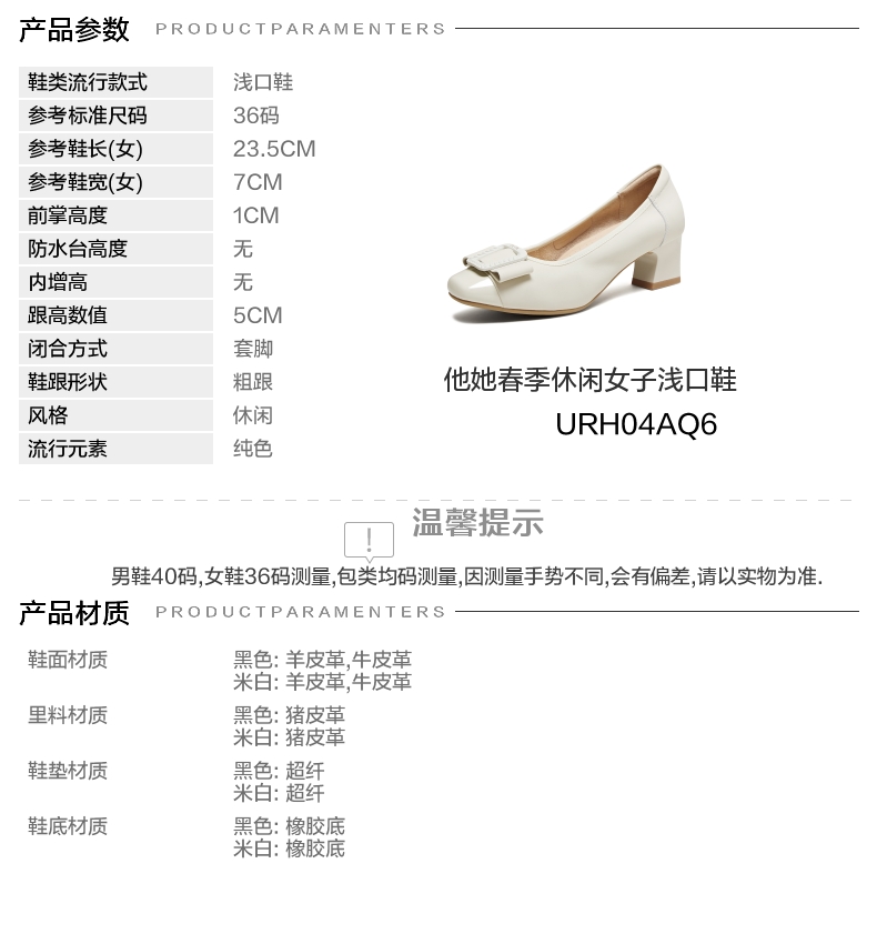 | 上市时间:2026年春季 | 鞋类流行款式:浅口鞋 | 鞋头款式:圆头 | 鞋面图案:纯色 | 鞋跟形状:粗跟 |