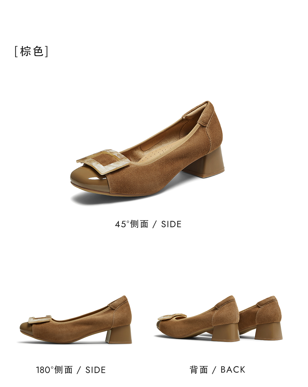 | 鞋头款式:圆头 | 鞋底材质:橡胶底 | 鞋面图案:纯色 | 内增高:无 | 鞋跟形状:粗跟 |