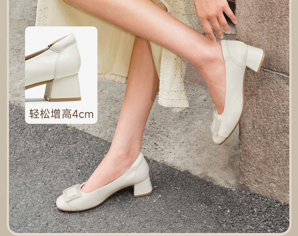| 风格:休闲 | 跟高数值:4CM | 色系:米白 | 配跟:有 | 性别:女子 |