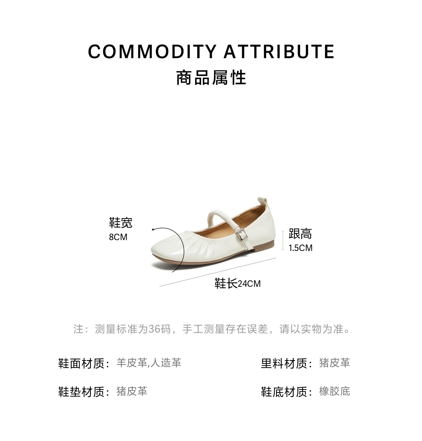 | 皮质特征:软面皮 | 前掌高度:0.5CM | 防水台高度:无 | 鞋类流行款式:玛丽珍鞋 |