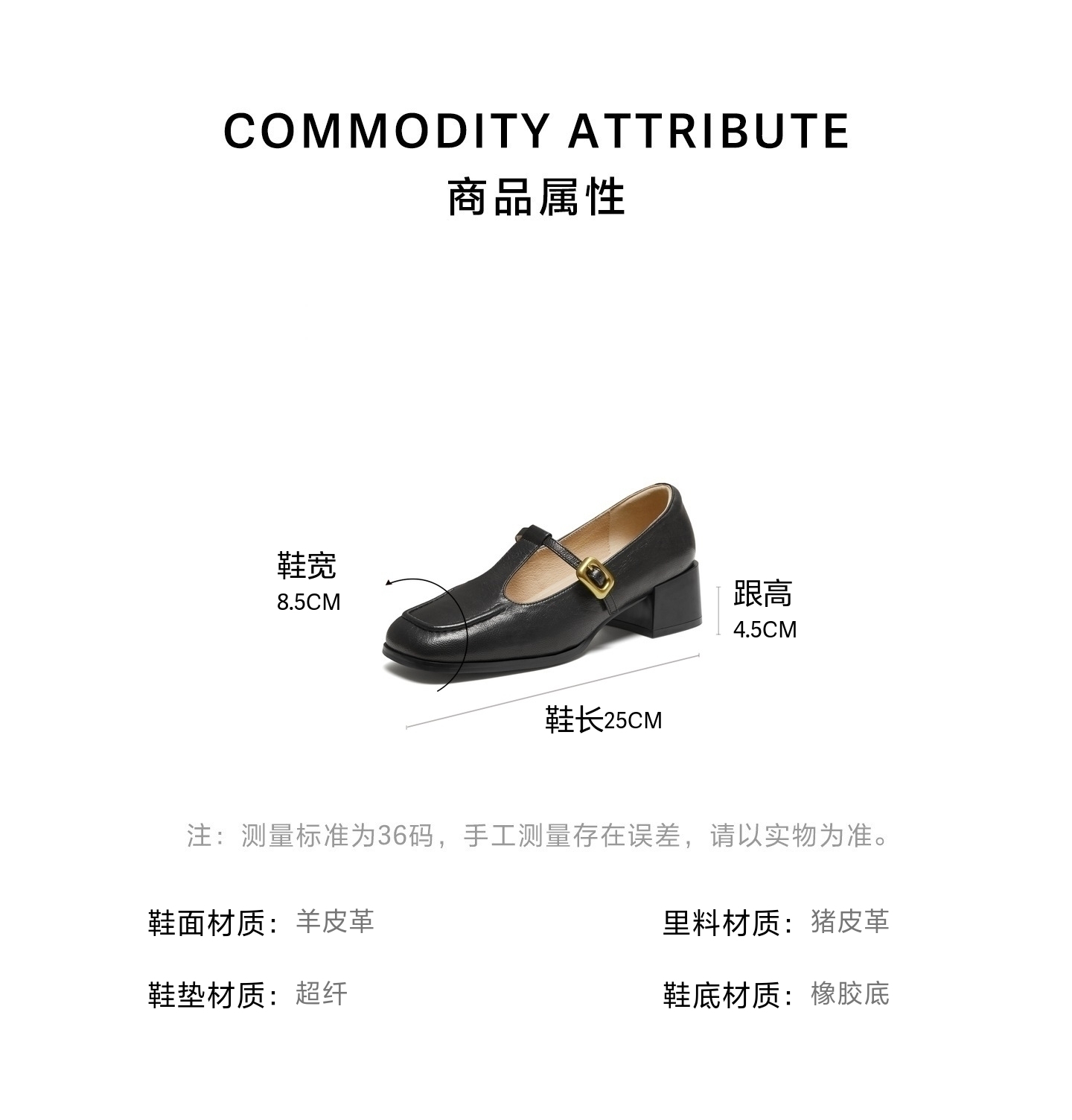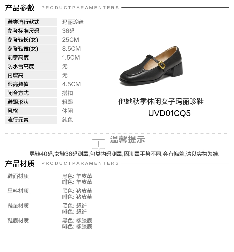 | 皮质特征:软面皮 | 前掌高度:1.5CM | 防水台高度:无 | 鞋类流行款式:玛丽珍鞋 |