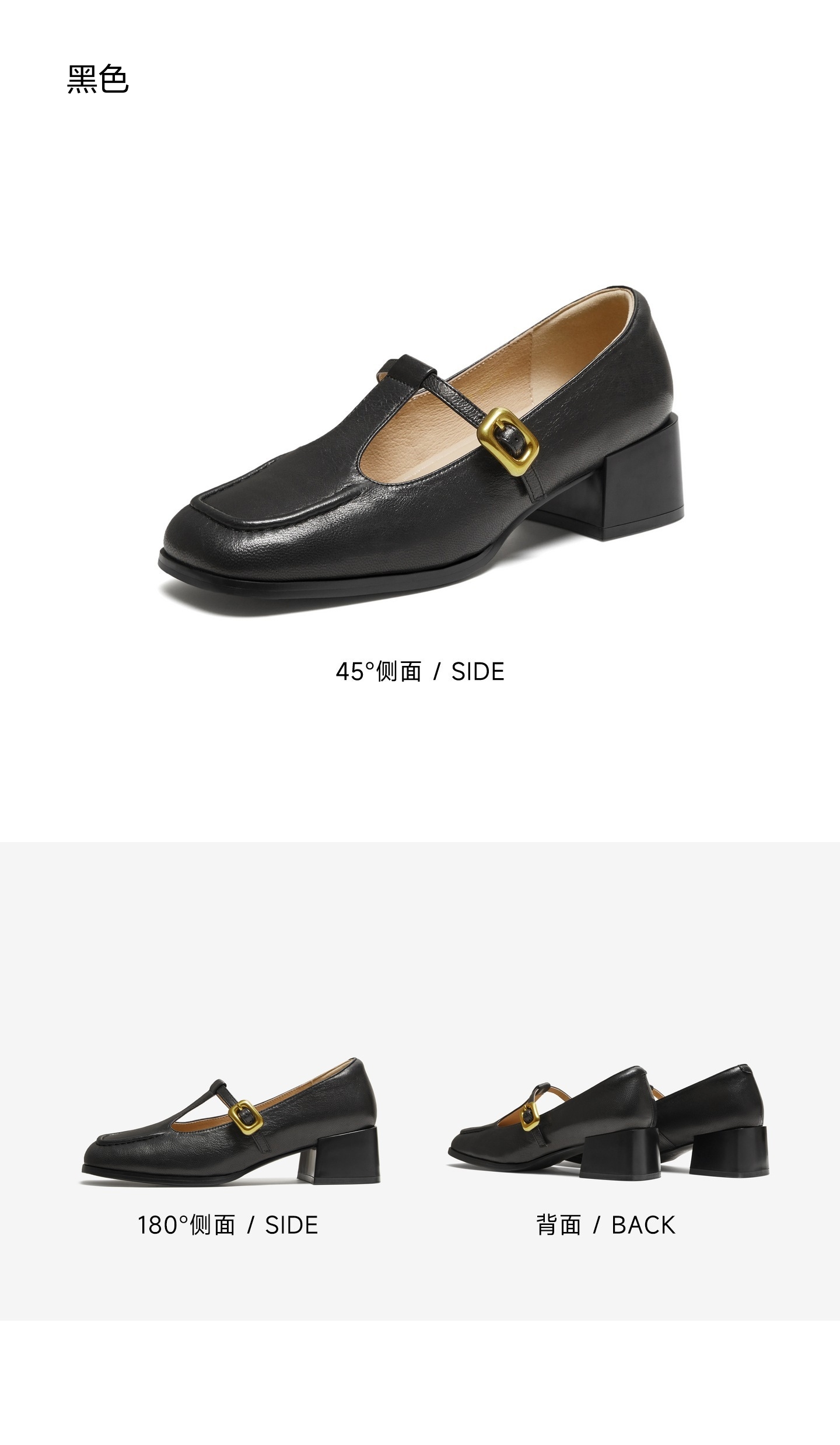 | 鞋头款式:方头 | 鞋底材质:橡胶底 | 鞋面图案:纯色 | 内增高:无 | 鞋跟形状:粗跟 |