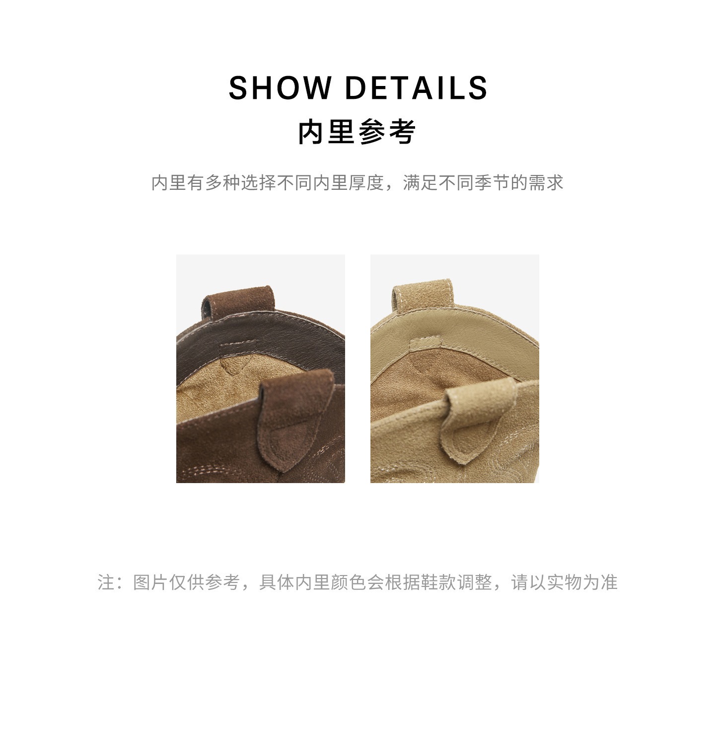 | 配跟:有 | 靴筒口围:28CM | 上市时间:2025年冬季 | 鞋类流行款式:西部靴 | 鞋头款式:尖头 |