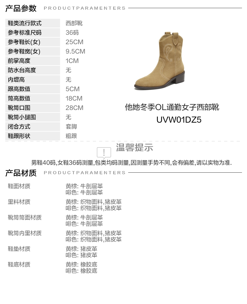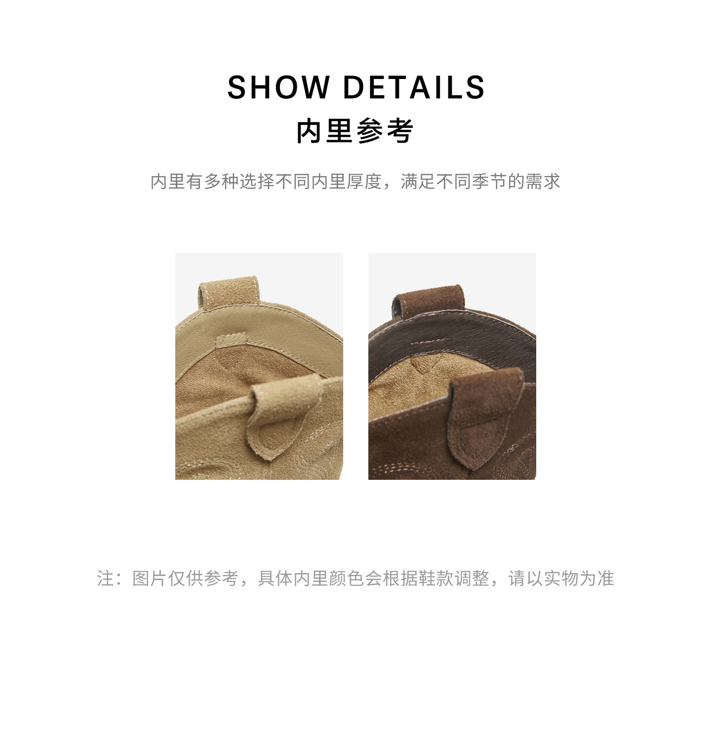 | 配跟:有 | 靴筒口围:28CM | 上市时间:2025年冬季 | 鞋类流行款式:西部靴 | 鞋头款式:尖头 |