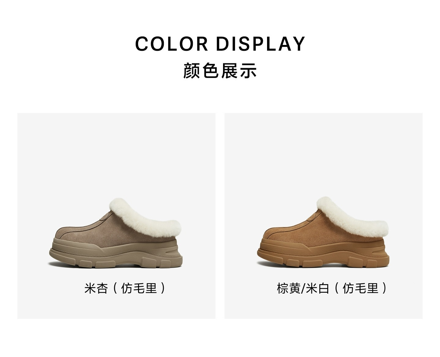 | 跟高数值:5CM | 色系:杏色 | 配跟:无 | 性别:女子 | 里料材质:人造毛绒 |