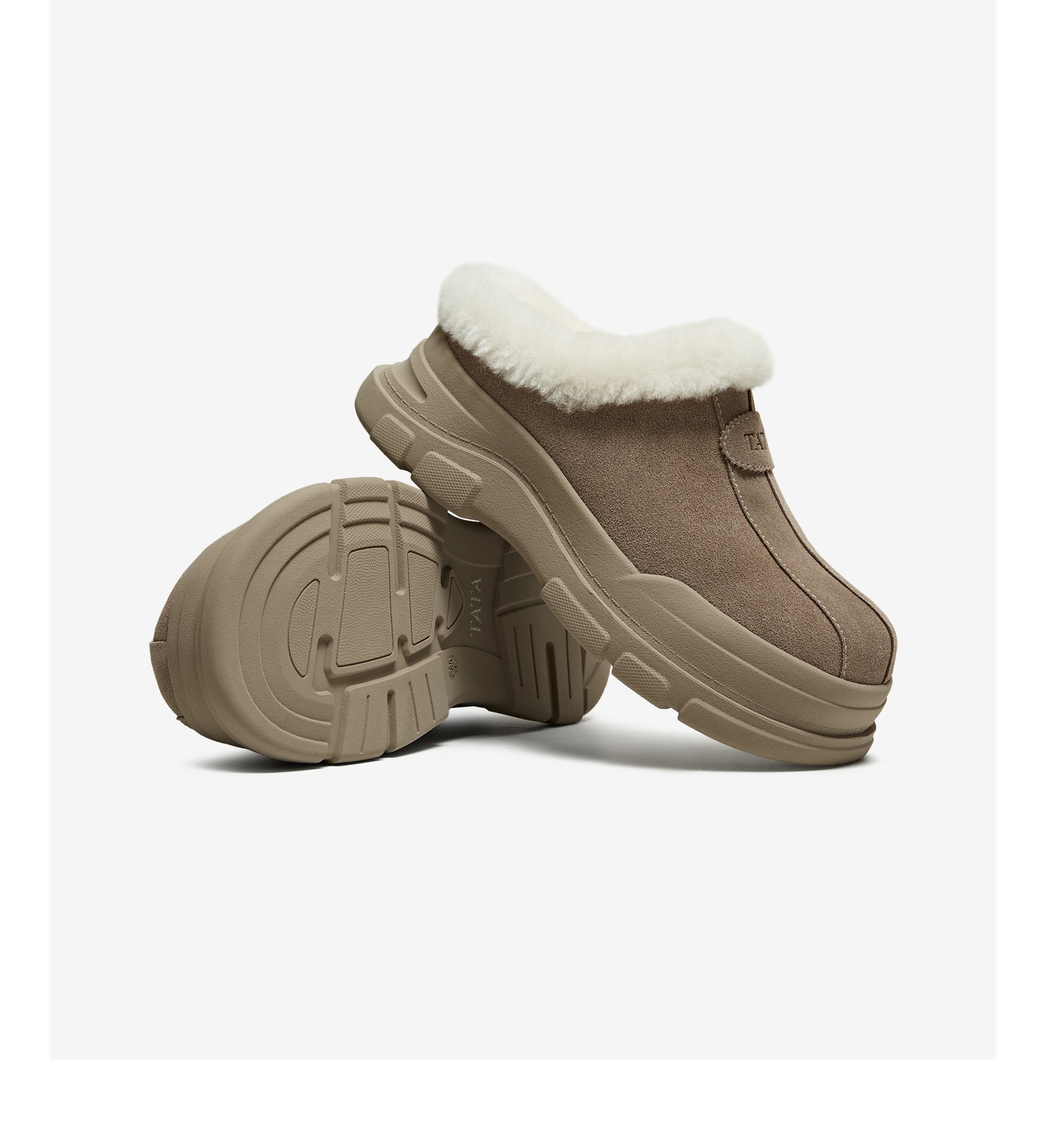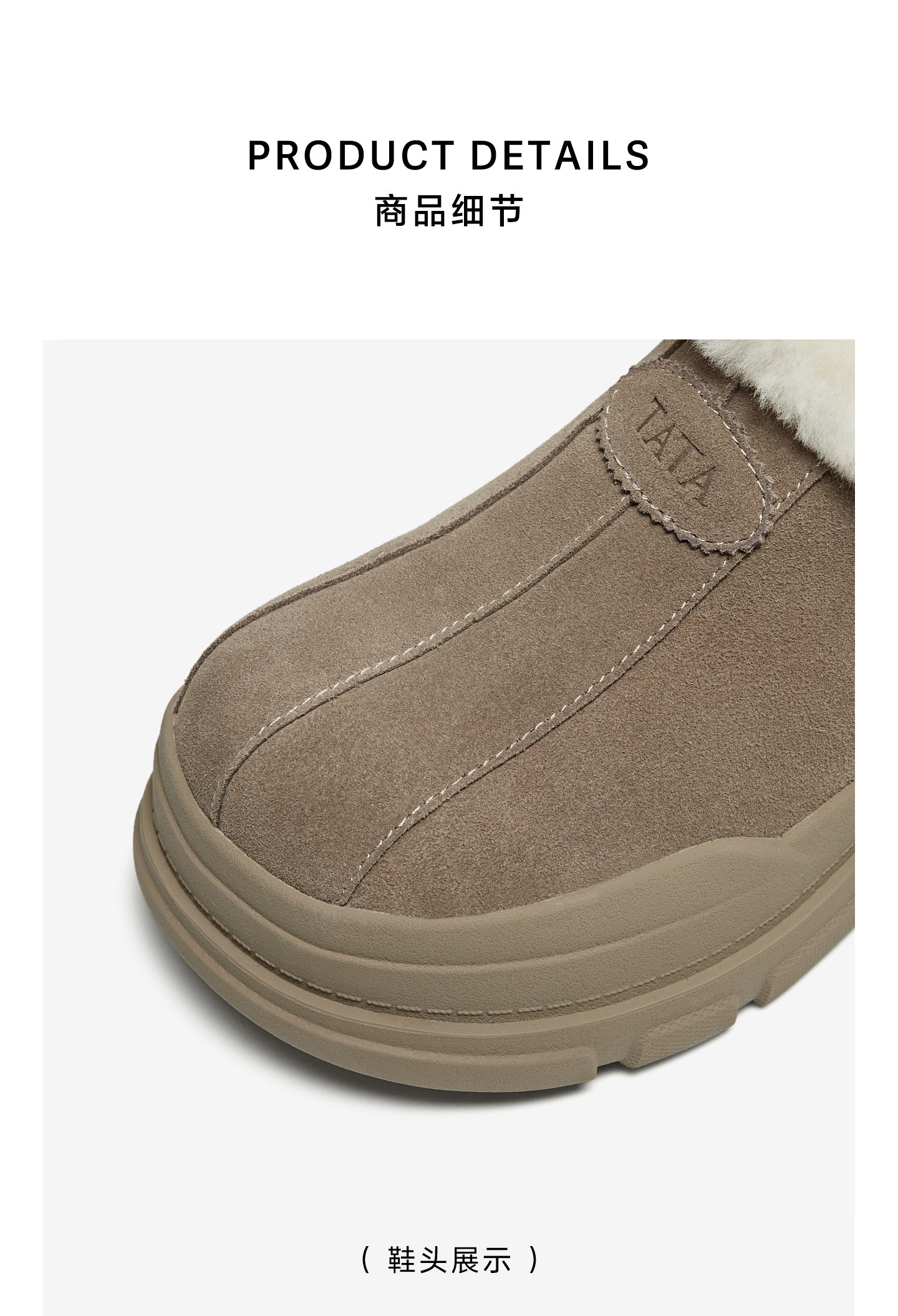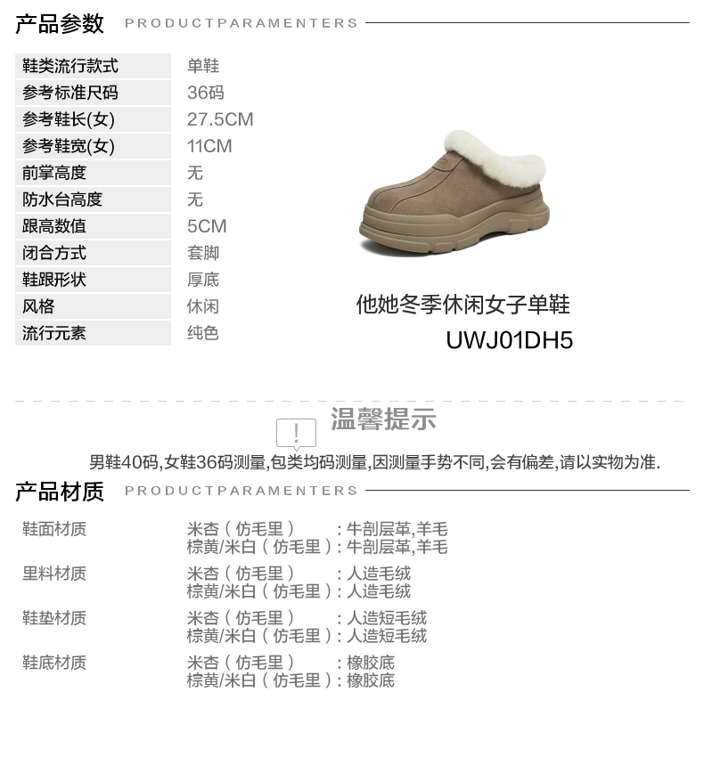 | 鞋头款式:圆头 | 鞋底材质:橡胶底 | 鞋面图案:纯色 | 鞋跟形状:厚底 | 鞋面材质:牛剖层革羊毛 |