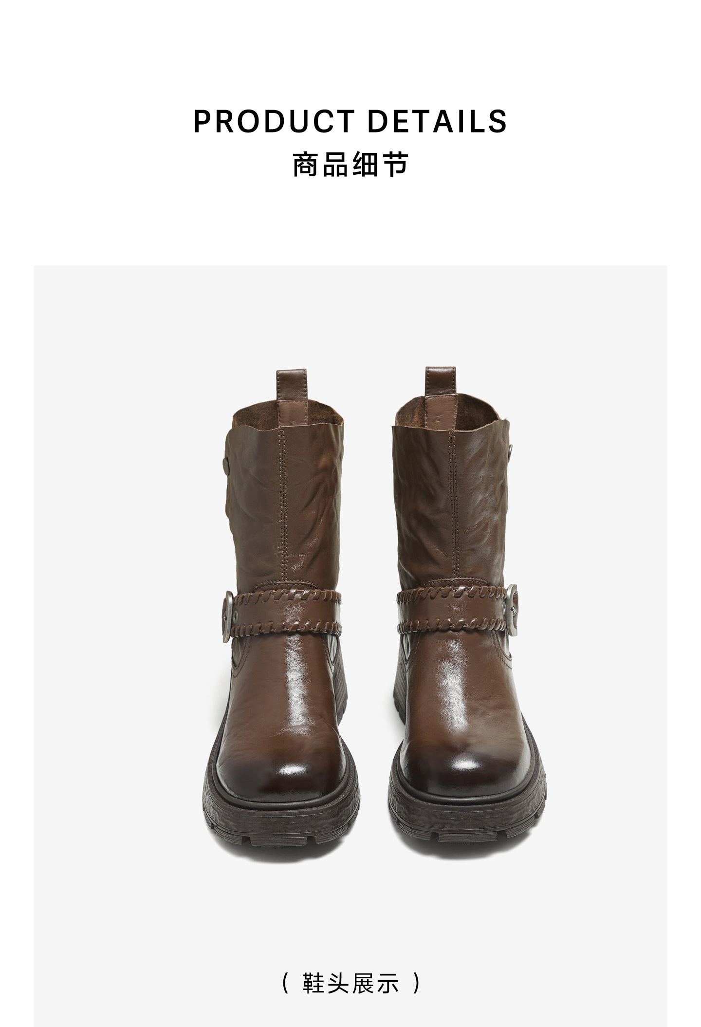| 鞋底材质:橡胶底 | 靴筒内里材质:猪皮革超纤织物面料 | 内增高:无 | 鞋面材质:牛皮革 | 闭合方式:套脚 |