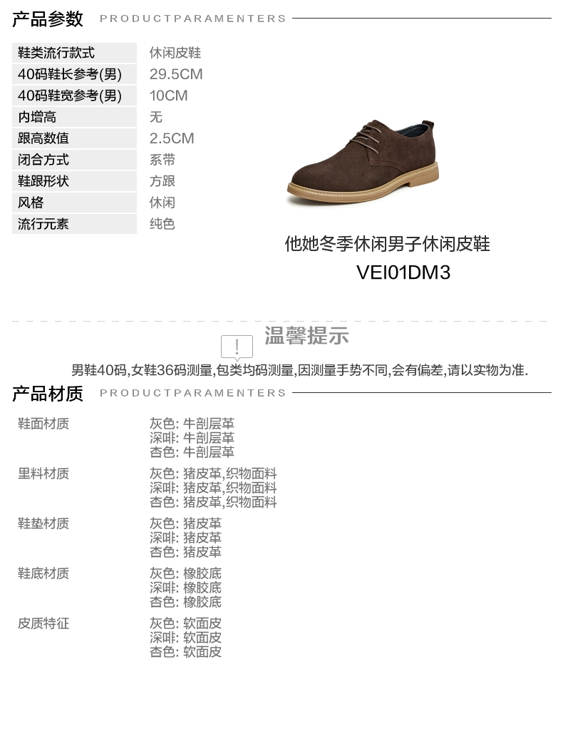 | 上市时间:2023年冬季 | 生产/经销/进口厂家:丽荣鞋业(深圳)有限公司 | 鞋类流行款式:休闲皮鞋 | 鞋头款式:圆头 | 执行标准:舒适上班鞋Q/LR001-2023 |