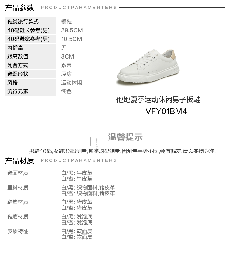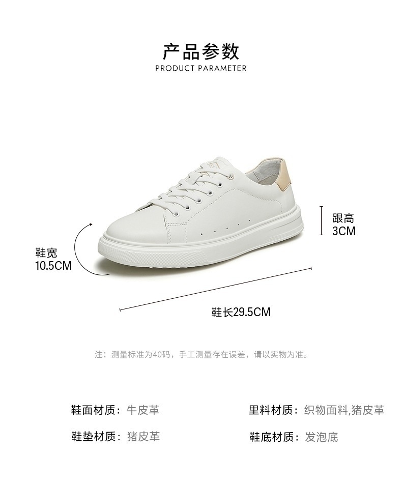 | 风格:运动休闲 | 色系:白色 | 跟高数值:3CM | 40码鞋宽参考(男):10.5CM | 性别:男子 |