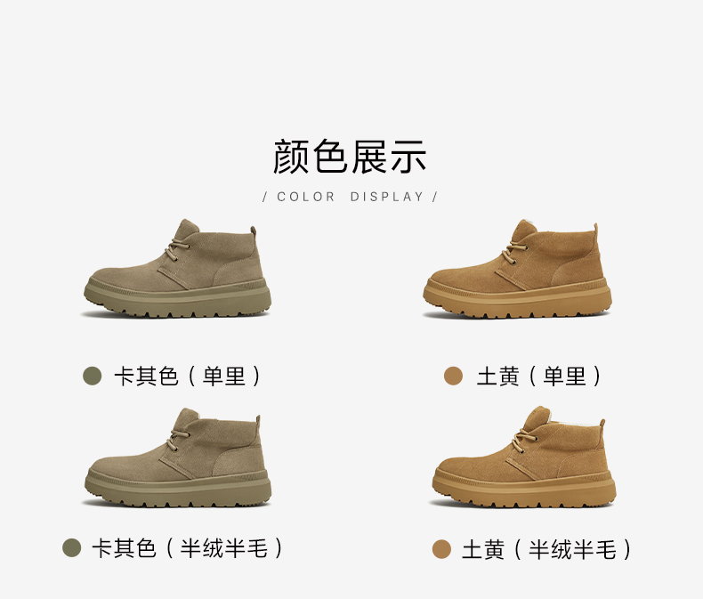 | 鞋面内里材质:猪皮革 | 跟高数值:4.5CM | 色系:卡其 | 性别:男子 | 筒高数值:8.5CM |