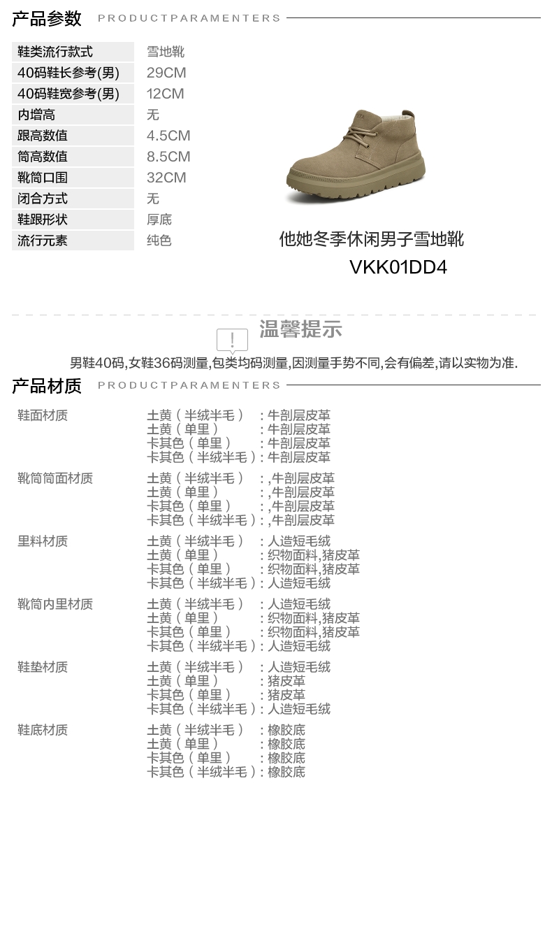 | 闭合方式:系带 | 40码鞋宽参考(男):12CM | 靴筒口围:32CM | 上市时间:2025年冬季 | 鞋类流行款式:雪地靴 |
