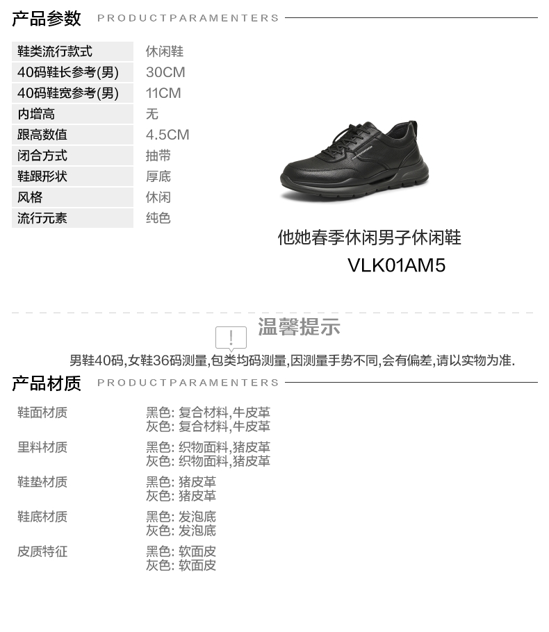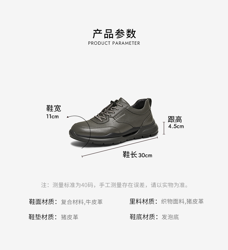 | 40码鞋长参考(男):30CM | 鞋帮:低帮 | 鞋底材质:发泡底 | 内增高:无 | 鞋面材质:牛皮革复合材料 |