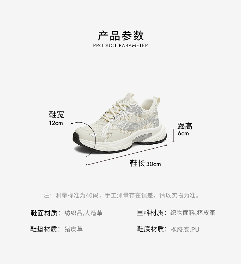 | 内增高:无 | 鞋跟形状:厚底 | 鞋面材质:人造革纺织品 | 流行元素:纯色 | 闭合方式:系带 |