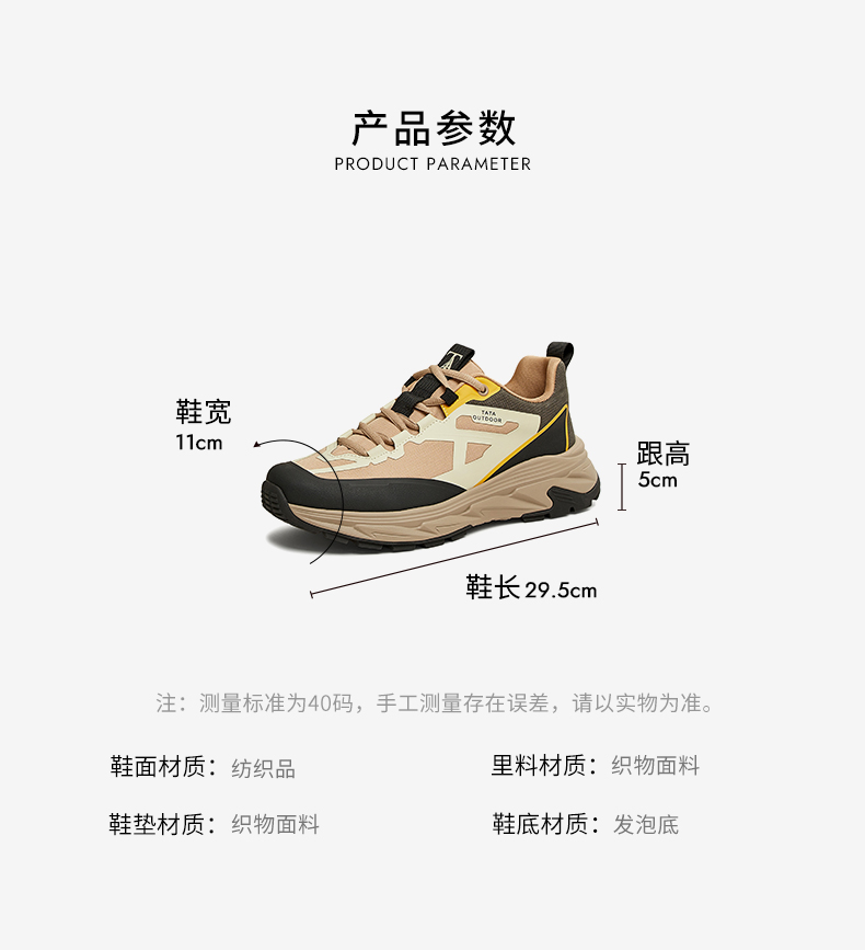 | 40码鞋长参考(男):29.5CM | 鞋帮:低帮 | 鞋底材质:发泡底 | 内增高:无 | 鞋面材质:纺织品 |