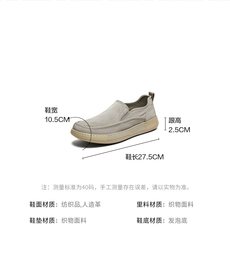 | 40码鞋长参考(男):27.5CM | 鞋帮:低帮 | 鞋头款式:圆头 | 鞋底材质:发泡底 | 鞋面图案:纯色 |