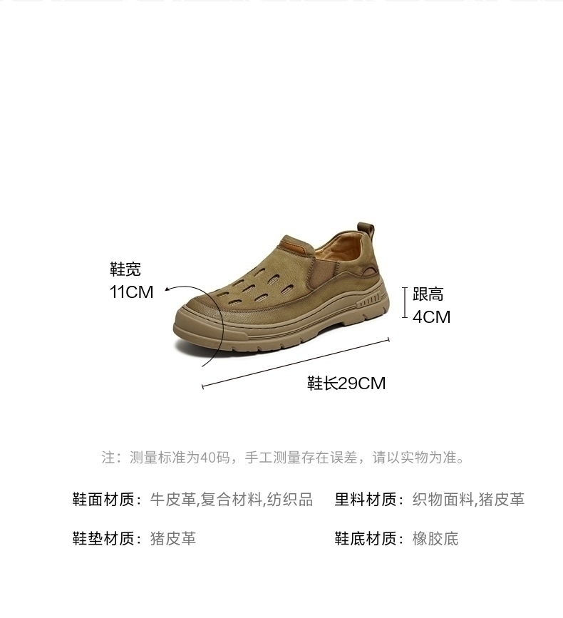 | 风格:休闲 | 色系:黑色 | 跟高数值:4CM | 40码鞋宽参考(男):11CM | 性别:男子 |