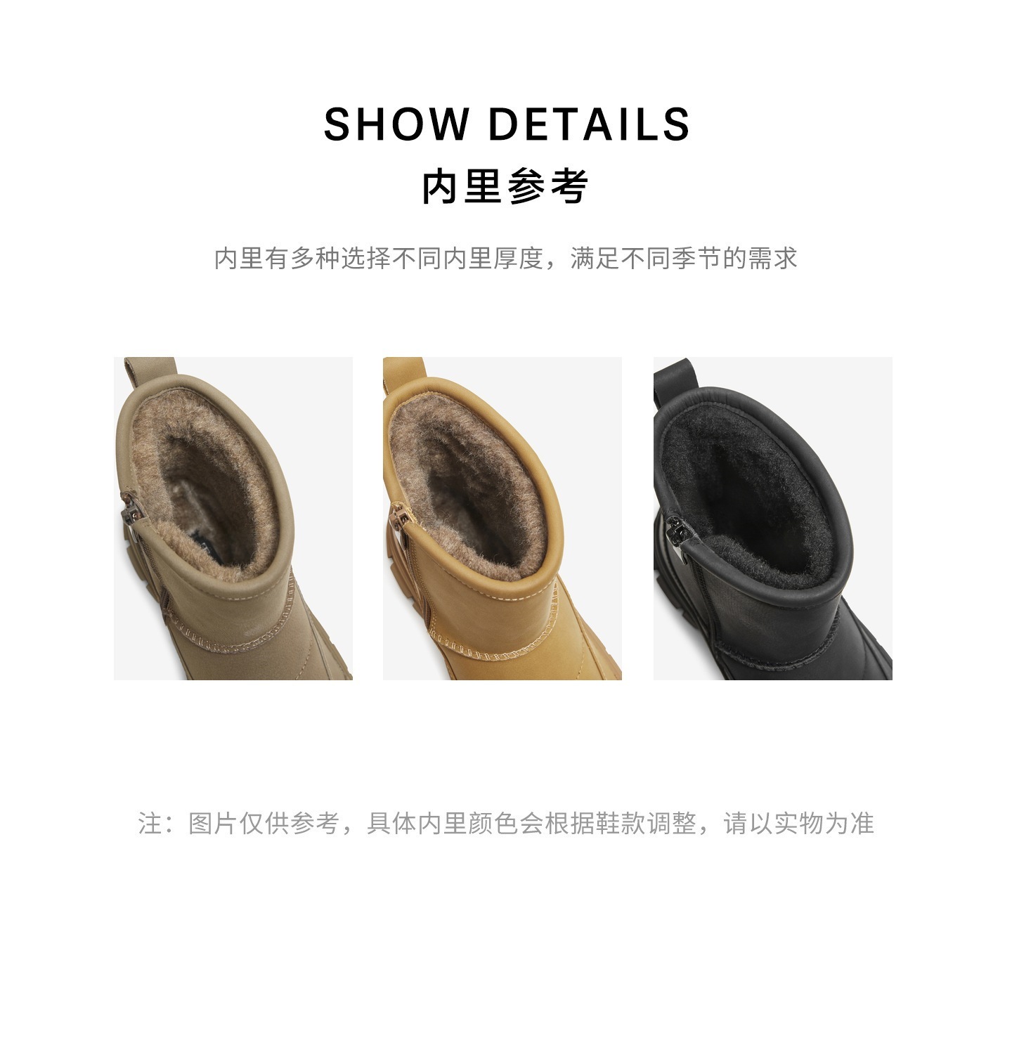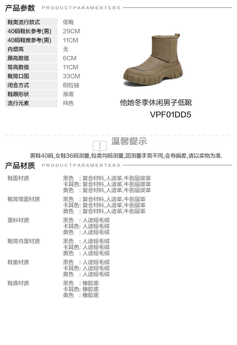 | 闭合方式:侧拉链 | 40码鞋宽参考(男):11CM | 靴筒口围:33CM | 上市时间:2025年冬季 | 鞋类流行款式:低靴 |