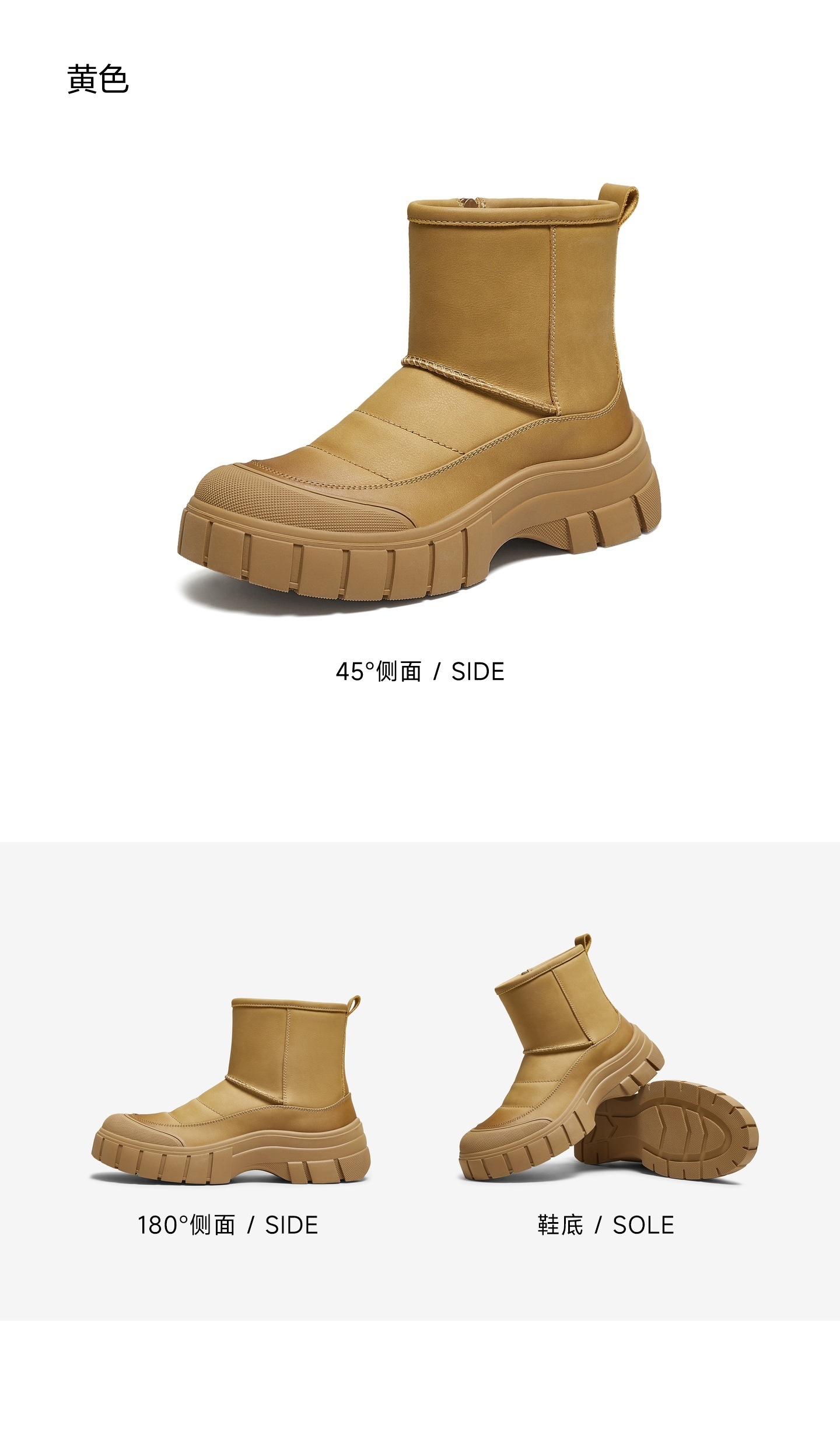 | 40码鞋长参考(男):29CM | 鞋底材质:橡胶底 | 靴筒内里材质:人造短毛绒 | 内增高:无 | 鞋面材质:牛剖层皮革人造革复合材料 |
