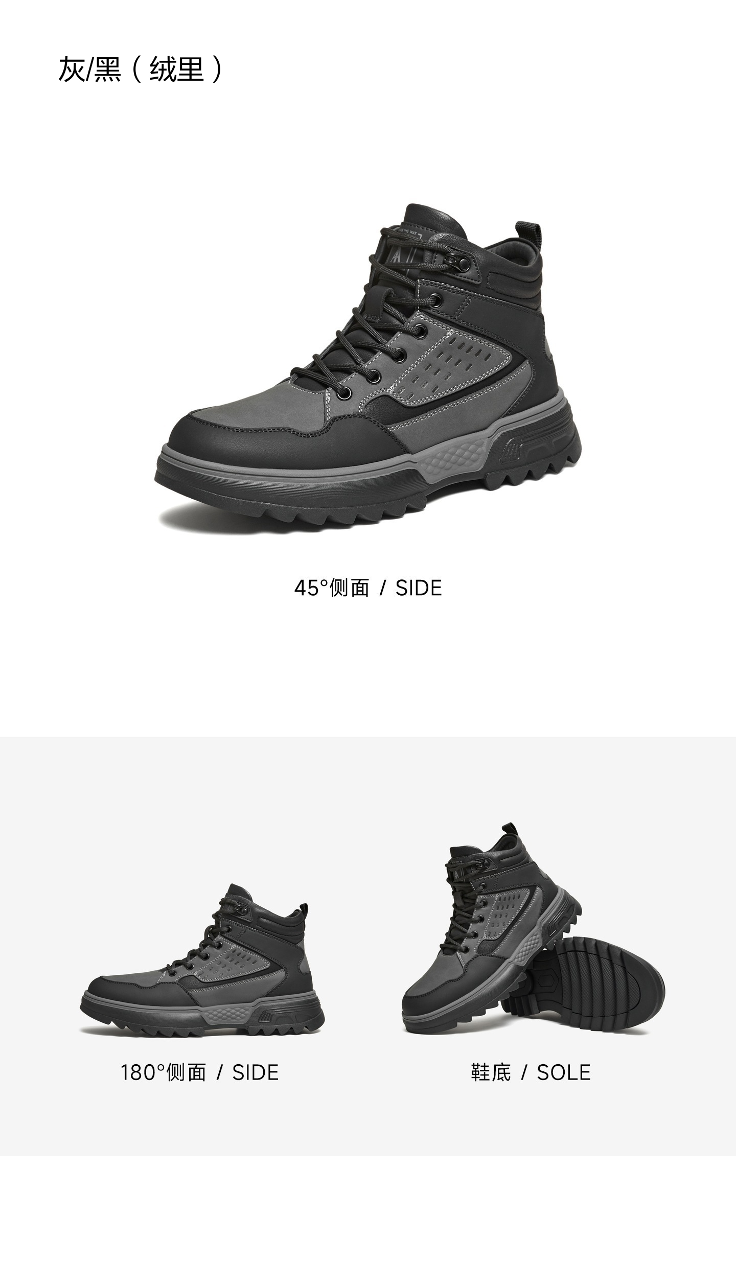 | 40码鞋长参考(男):29CM | 鞋底材质:橡胶底 | 靴筒内里材质:人造短毛绒 | 内增高:无 | 鞋面材质:人造革复合材料 |