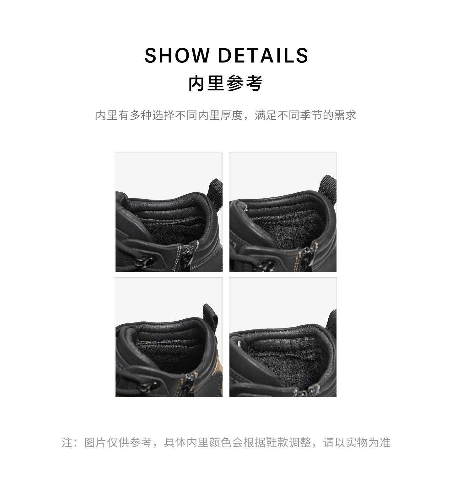 | 鞋面内里材质:猪皮革 | 跟高数值:3CM | 色系:卡其 | 性别:男子 | 筒高数值:16.5CM |