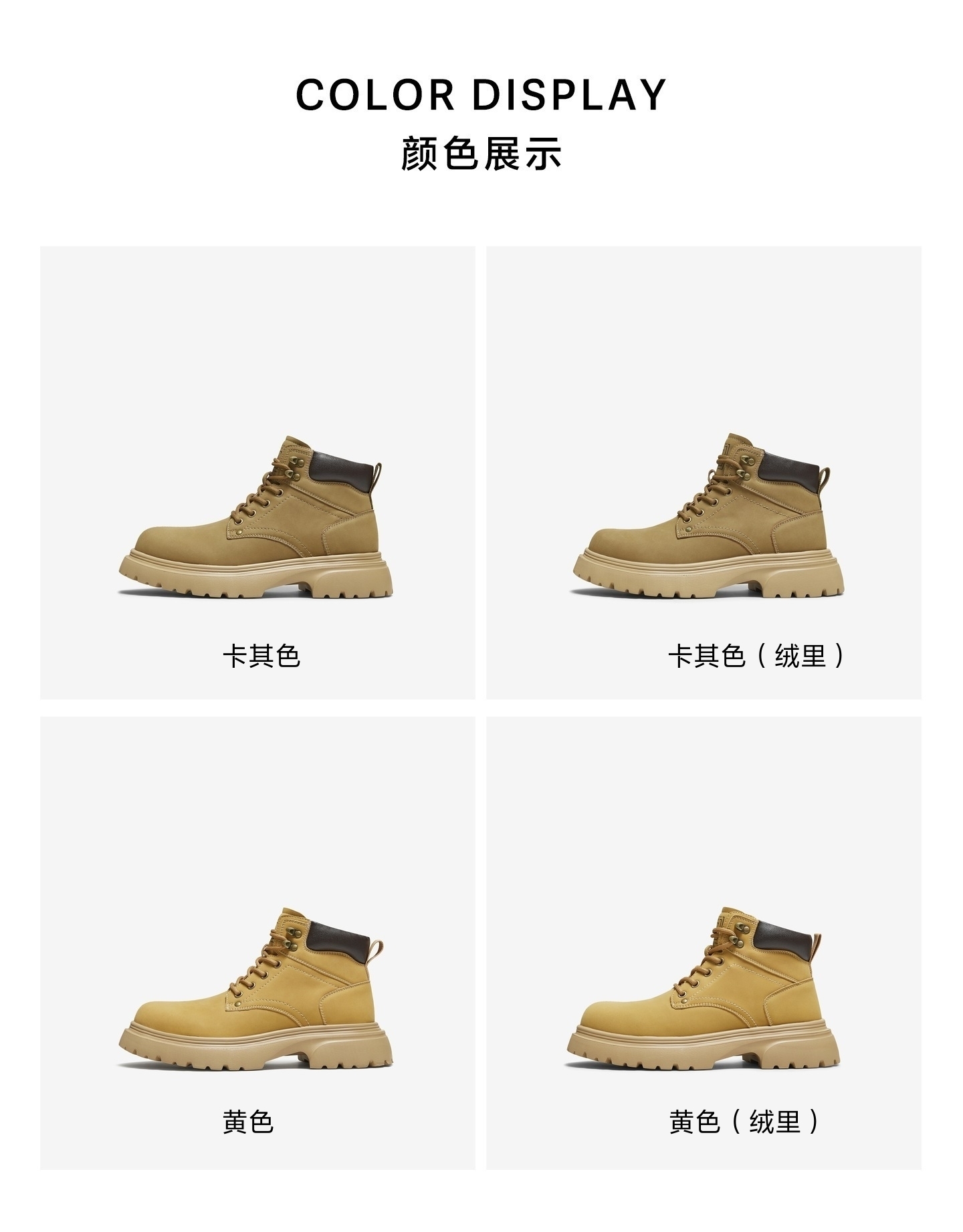 | 跟高数值:4.5CM | 色系:卡其 | 性别:男子 | 筒高数值:10CM | 靴筒筒面材质:人造革复合材料 |