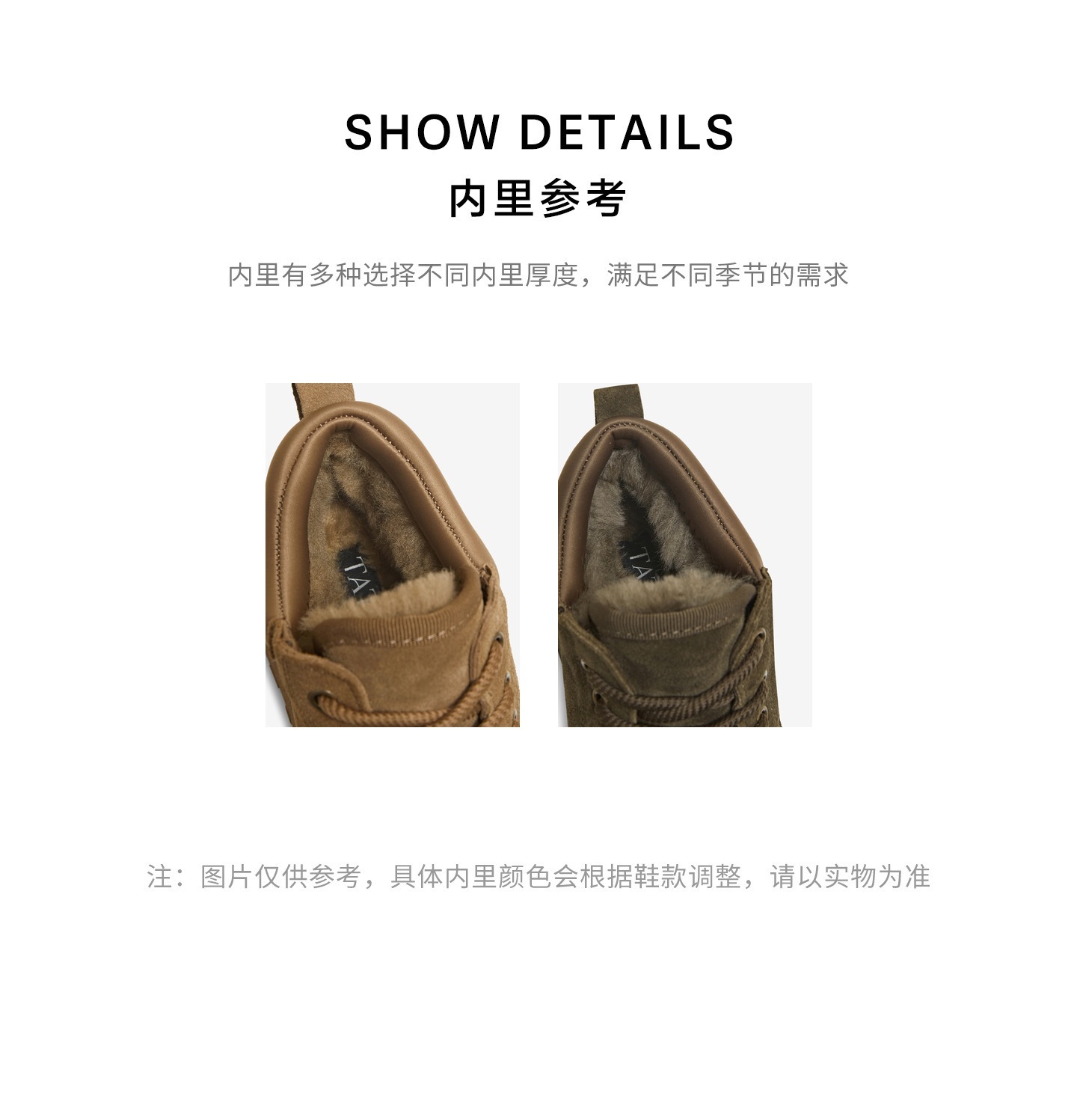 | 闭合方式:系带 | 40码鞋宽参考(男):11.5CM | 靴筒口围:31CM | 上市时间:2025年冬季 | 鞋类流行款式:低靴 |