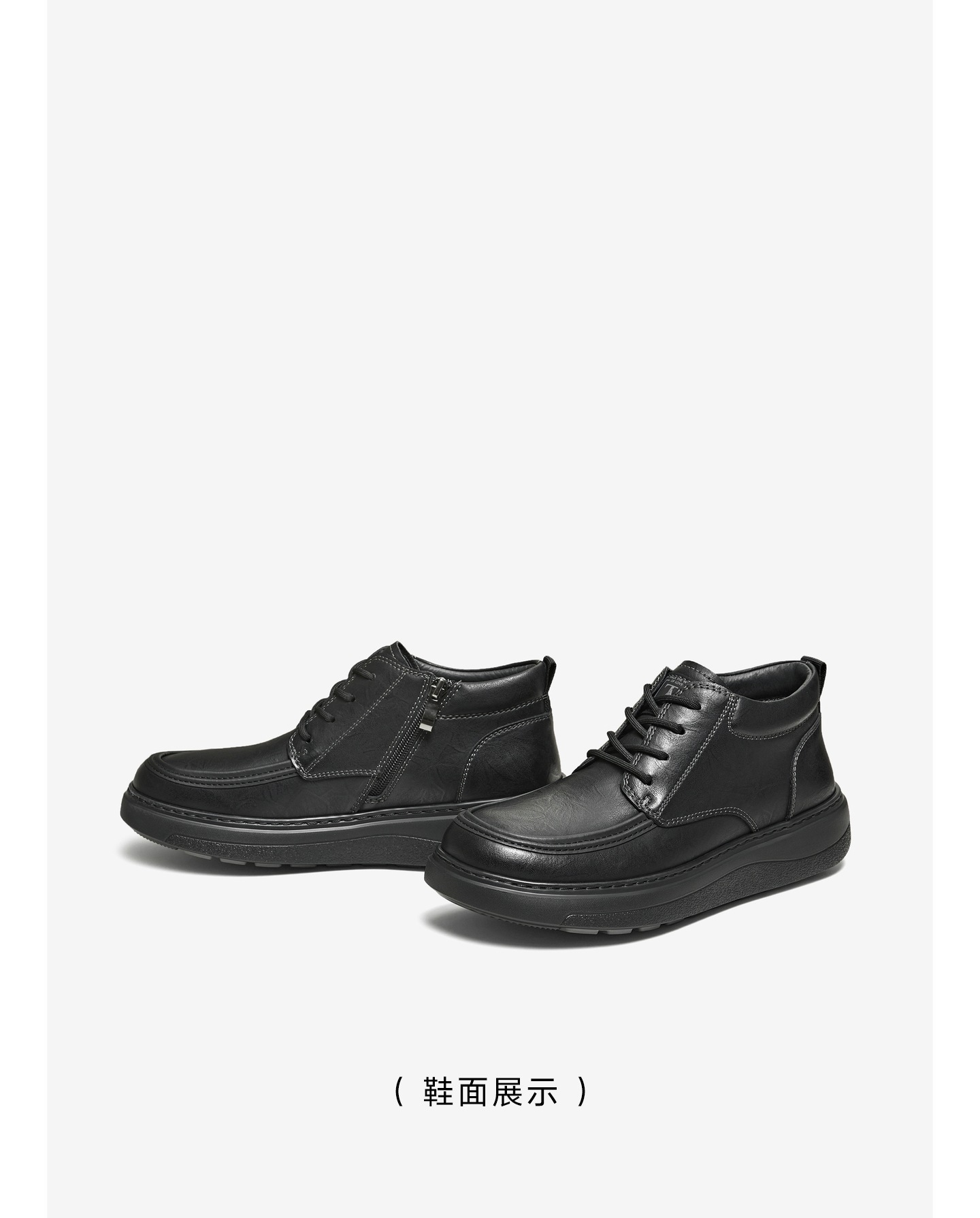 | 鞋面内里材质:猪皮革 | 跟高数值:3CM | 色系:黑色 | 性别:男子 | 筒高数值:7.5CM |