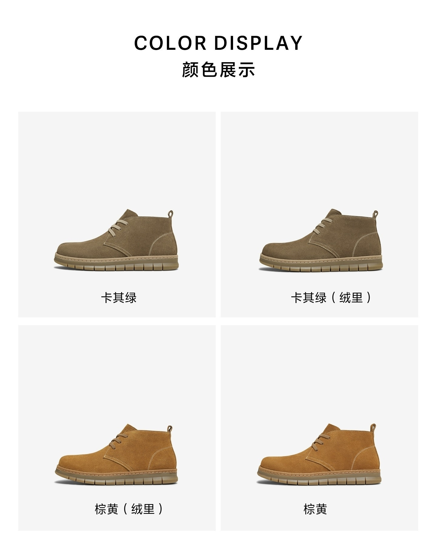 | 跟高数值:2.5CM | 色系:卡其 | 性别:男子 | 筒高数值:9CM | 靴筒筒面材质:牛剖层革 |