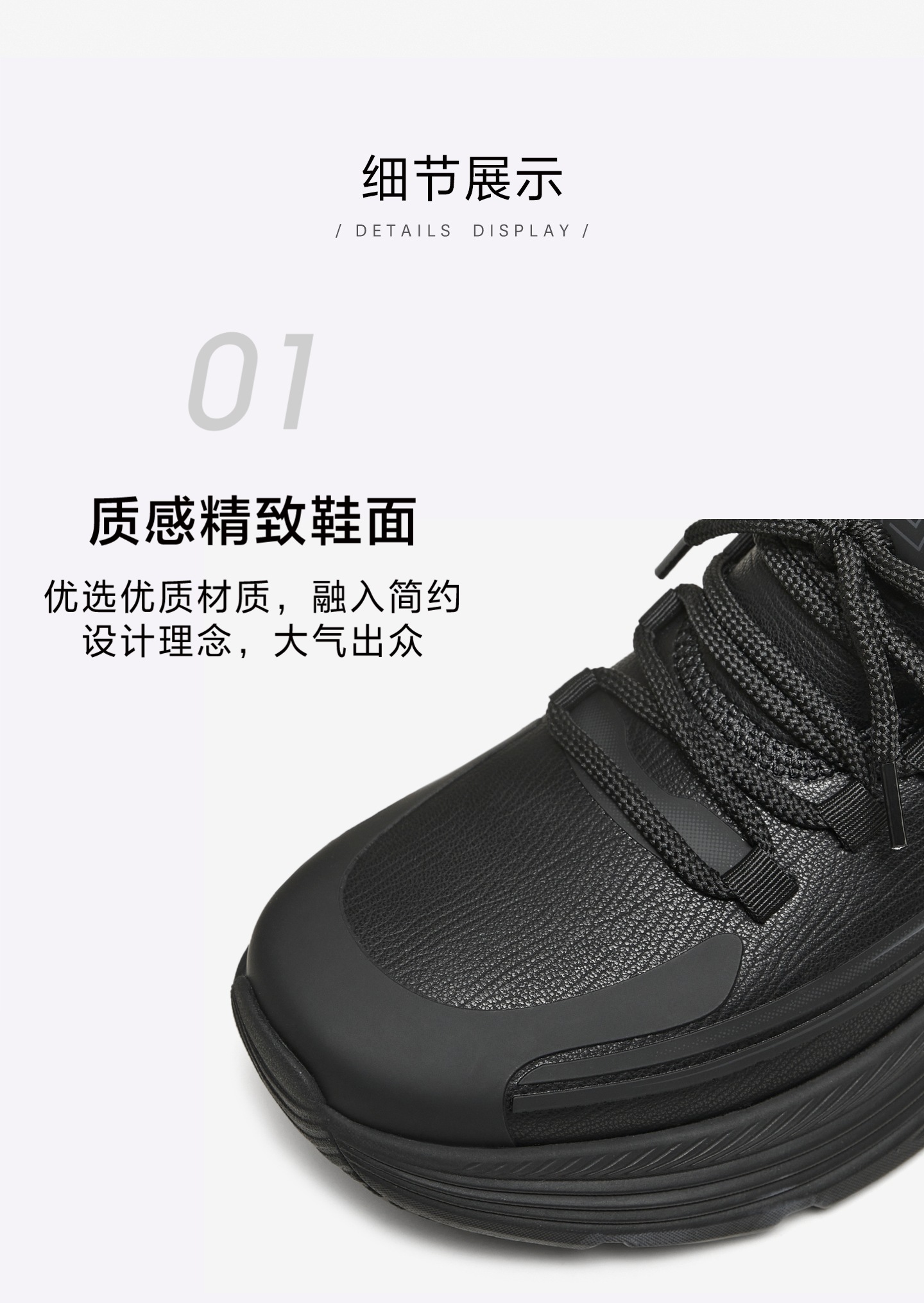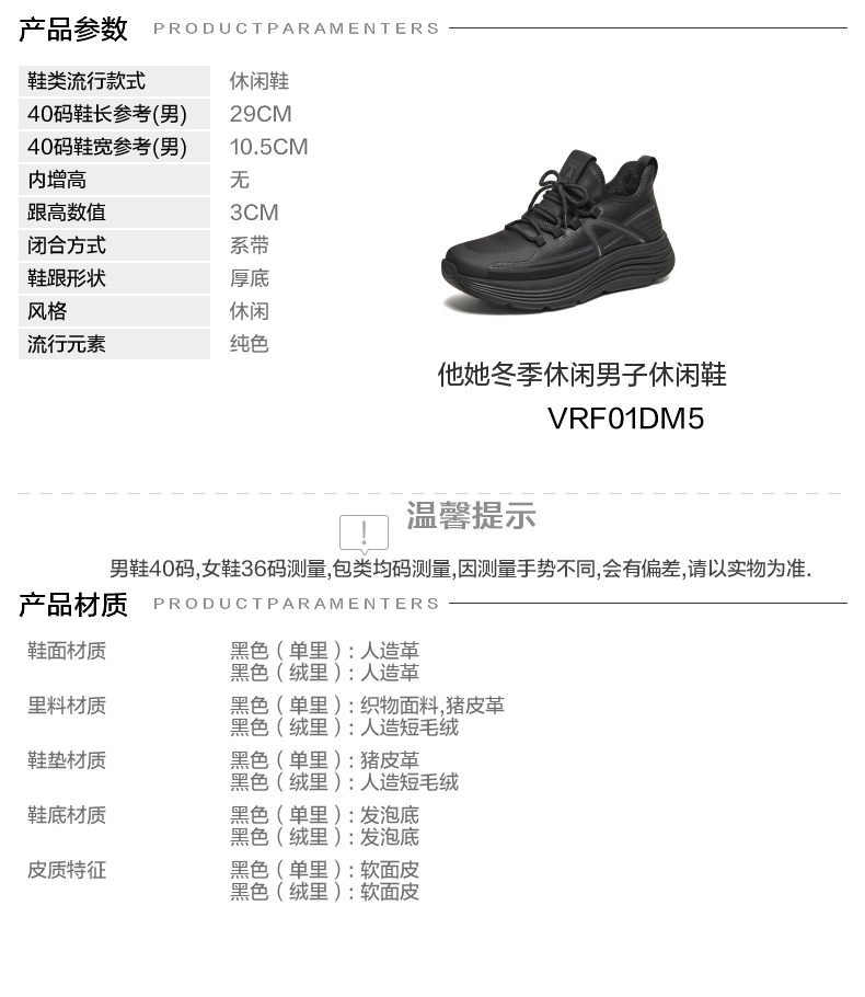 | 风格:休闲 | 鞋面内里材质:猪皮革 | 色系:黑色 | 跟高数值:3CM | 40码鞋宽参考(男):10.5CM |