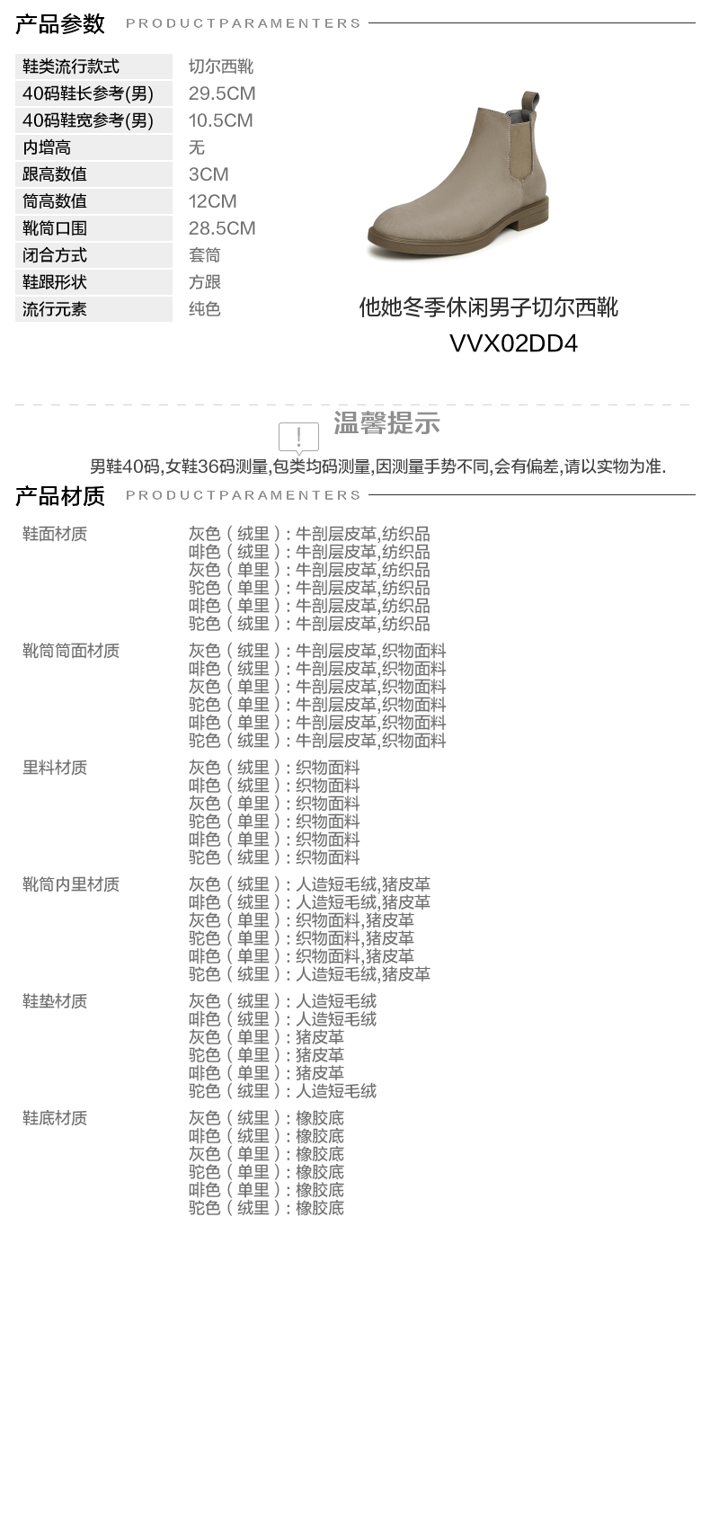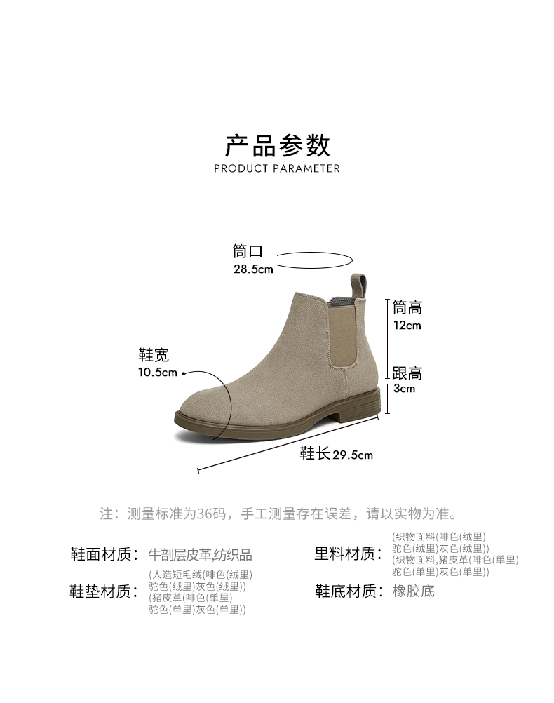 | 靴筒口围:28.5CM | 风格分类:切尔西靴 | 上市时间:2024年冬季 | 生产/经销/进口厂家:丽荣鞋业(深圳)有限公司 | 鞋类流行款式:切尔西靴 |