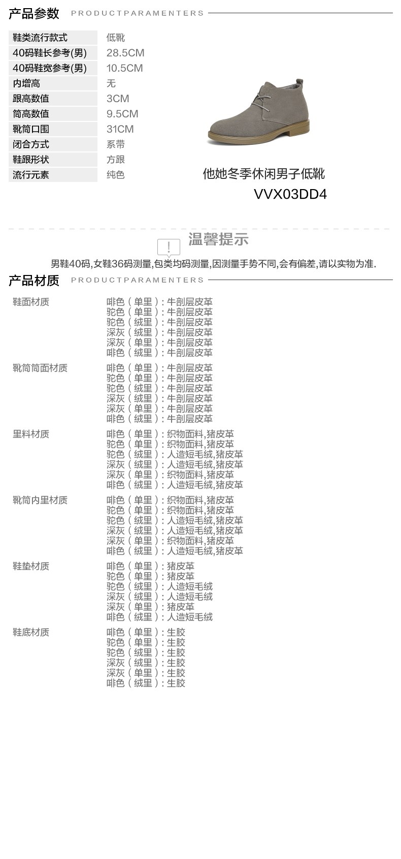 | 筒高数值:9.5CM | 性别:男子 | 靴筒筒面材质:牛剖层皮革 | 里料材质:猪皮革人造短毛绒 | 内里:猪皮纺织品 |