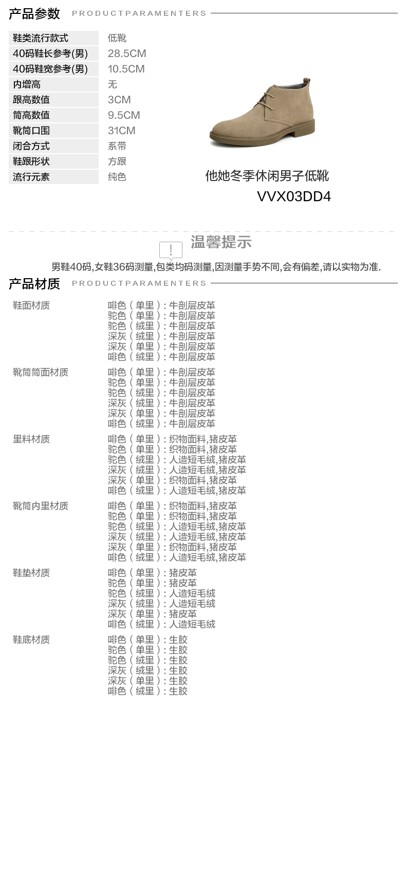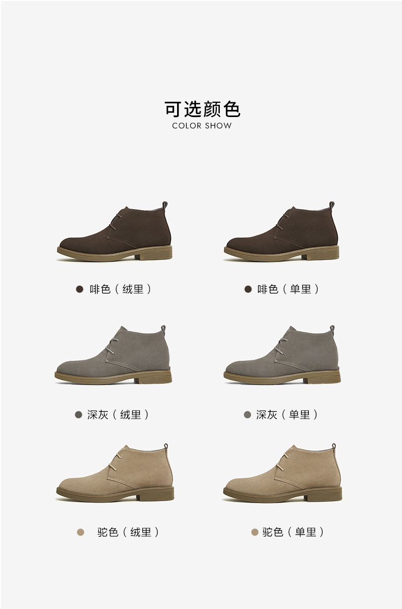 | 筒高数值:9.5CM | 性别:男子 | 靴筒筒面材质:牛剖层皮革 | 里料材质:猪皮革织物面料 | 内里:猪皮纺织品 |