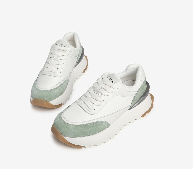 | 鞋面材质:织物面料猪剖层革复合材料 | 流行元素:撞色 | 参考鞋长(女):27CM | 参考鞋宽(女):10CM | 闭合方式:系带 |