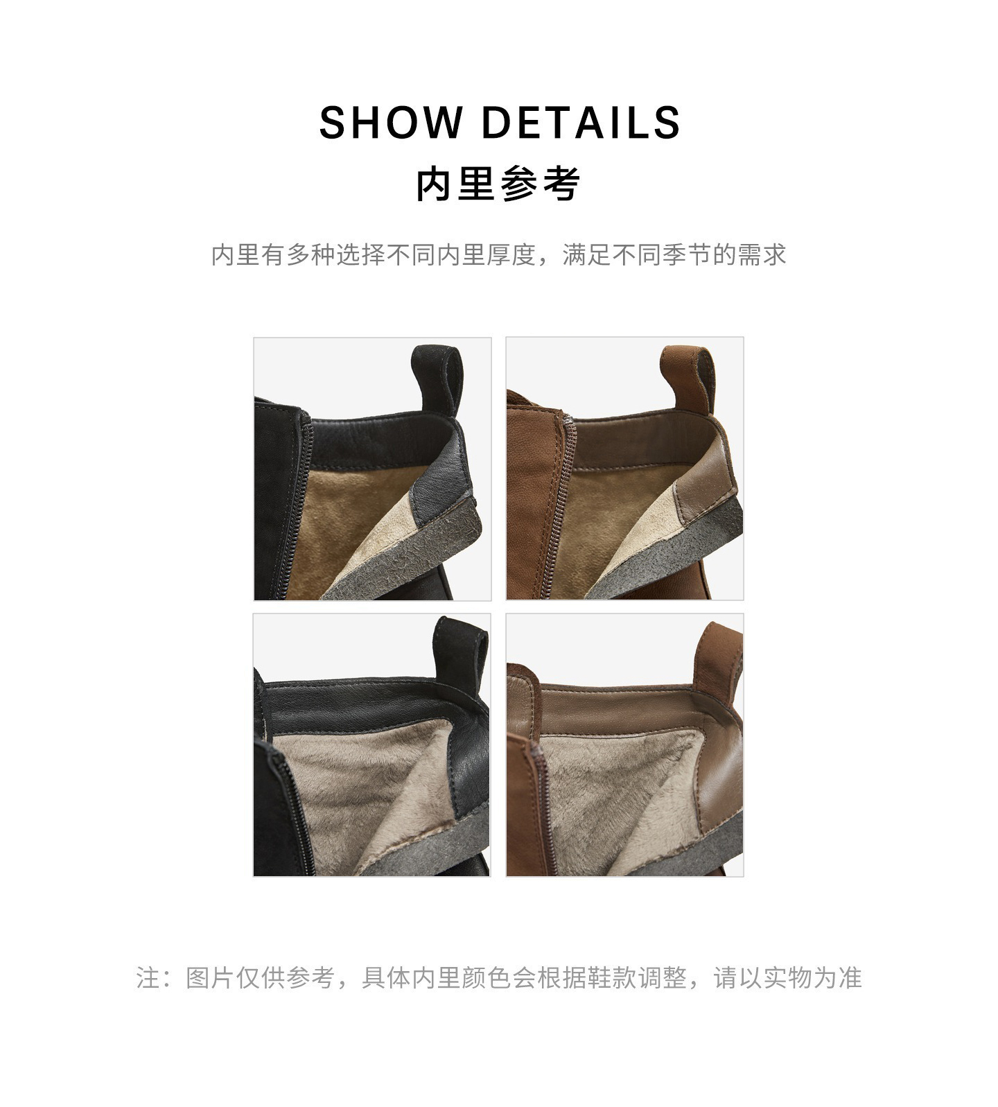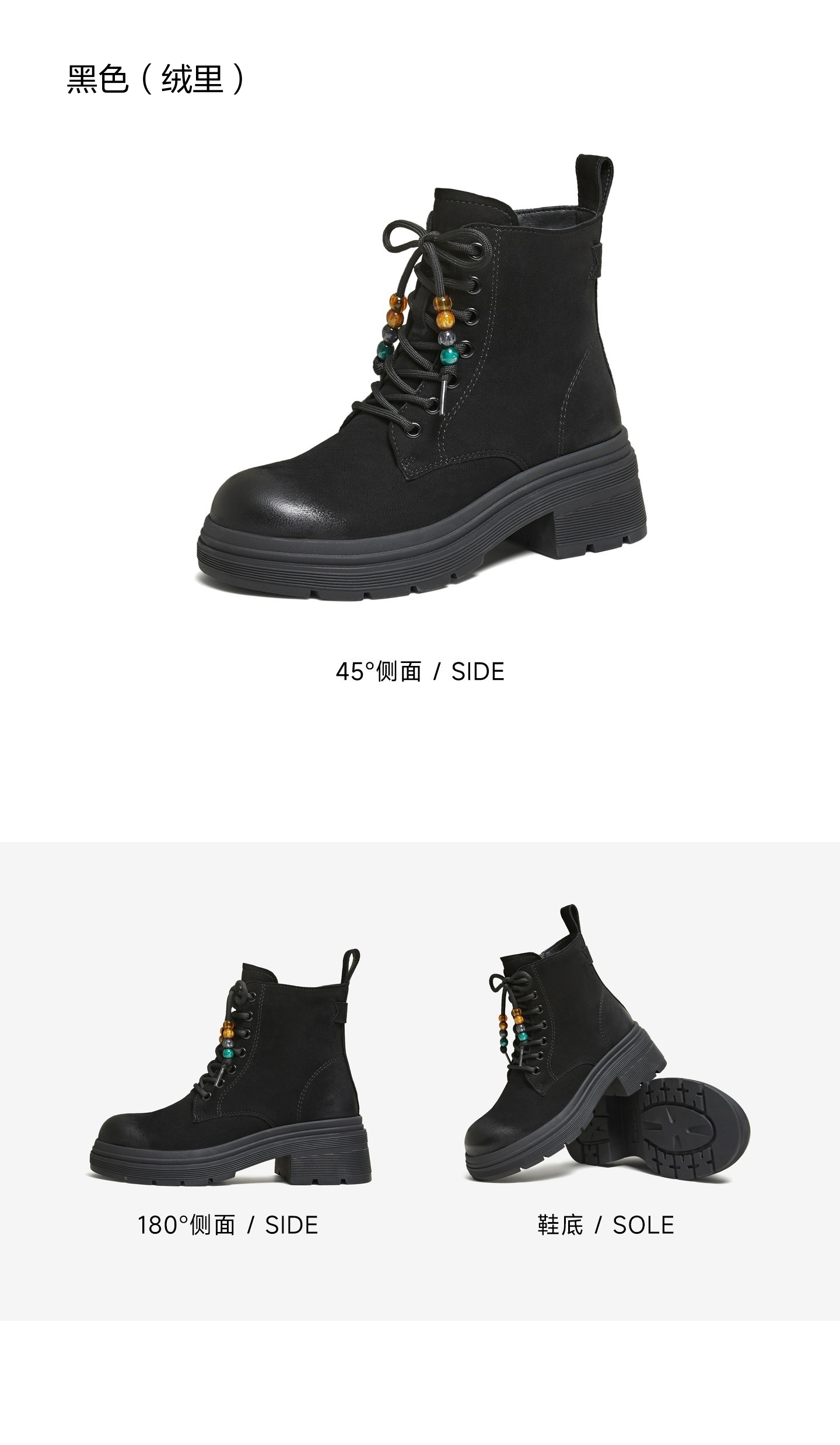 | 鞋底材质:橡胶底 | 靴筒内里材质:人造短毛绒 | 内增高:无 | 鞋面材质:羊皮革 | 闭合方式:侧拉链 |