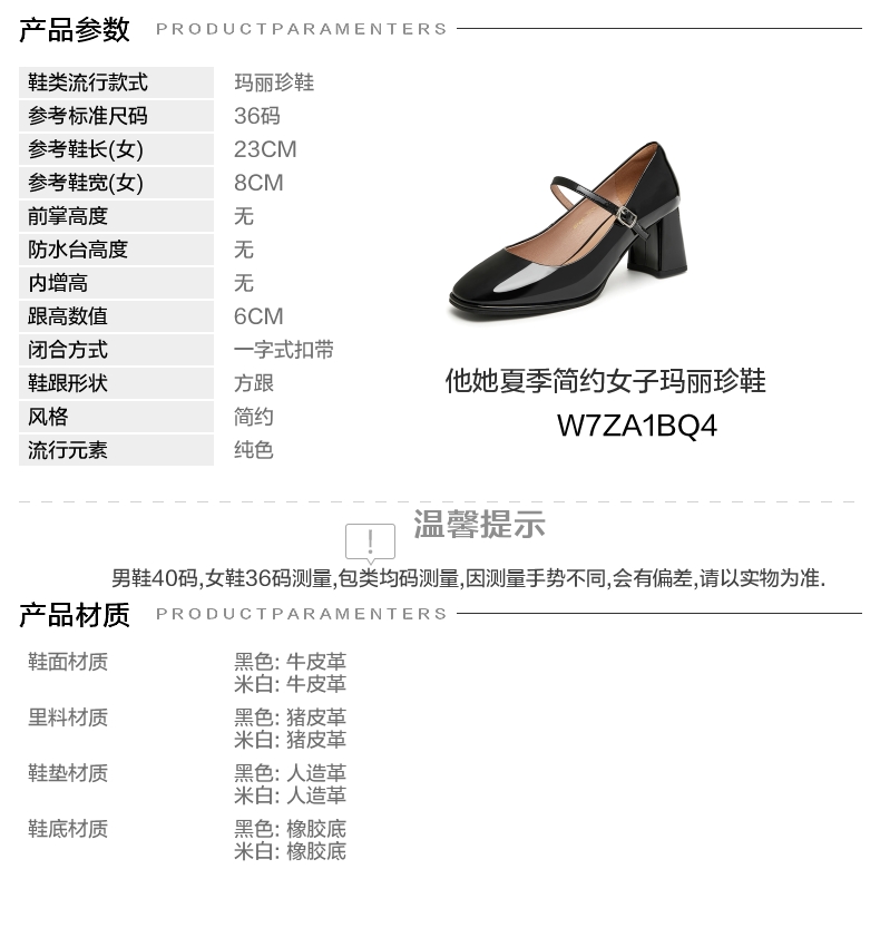 • TATA/他她2024夏时尚简约百搭纯色玛丽珍女W7ZA1BQ4