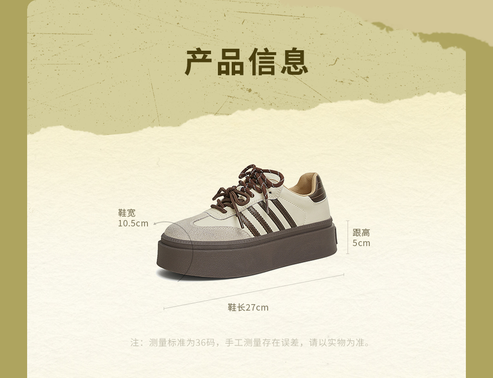 | 鞋跟形状:厚底 | 参考鞋长(女):26CM | 流行元素:纯色 | 参考鞋宽(女):10.5CM | 风格:休闲 |