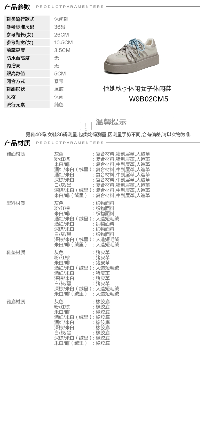 | 配跟:有 | 上市时间:2025年秋季 | 鞋类流行款式:休闲鞋 | 鞋头款式:圆头 | 鞋面图案:纯色 |