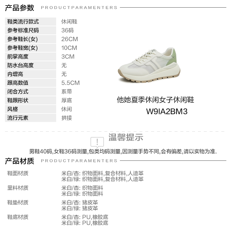 | 鞋跟形状:厚底 | 鞋面材质:织物面料人造革复合材料 | 流行元素:拼接 | 参考鞋长(女):26CM | 参考鞋宽(女):10CM |