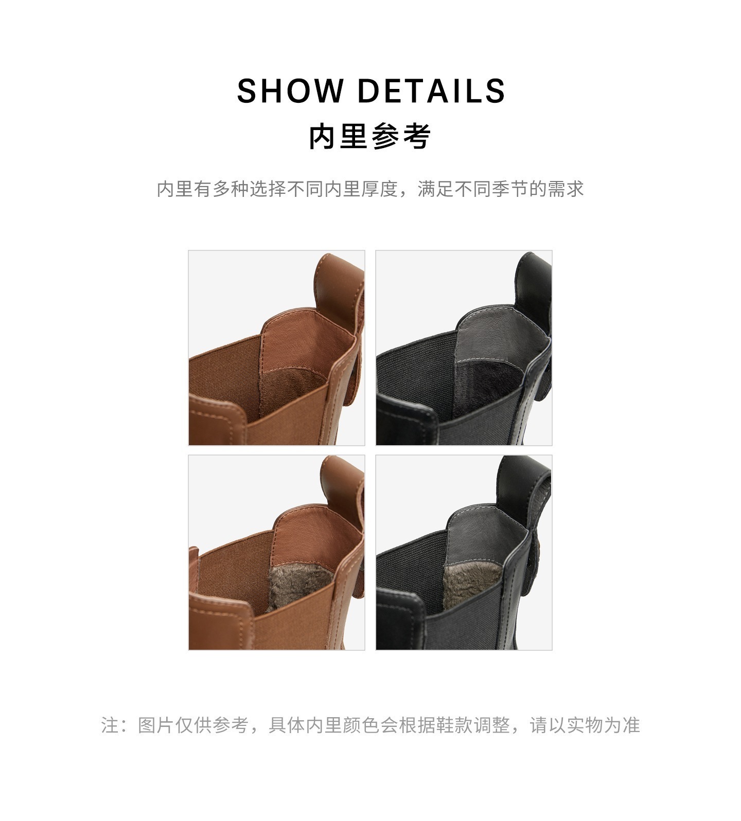 | 帮面材质:织物牛皮革 | 配跟:有 | 靴筒口围:26.5CM | 上市时间:2024年冬季 | 鞋类流行款式:切尔西靴 |