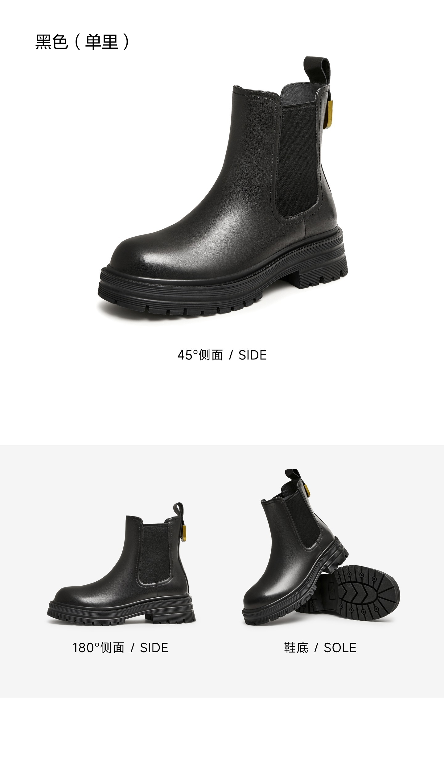 | 帮面材质:织物牛皮革 | 配跟:有 | 靴筒口围:27CM | 上市时间:2024年冬季 | 鞋类流行款式:切尔西靴 |