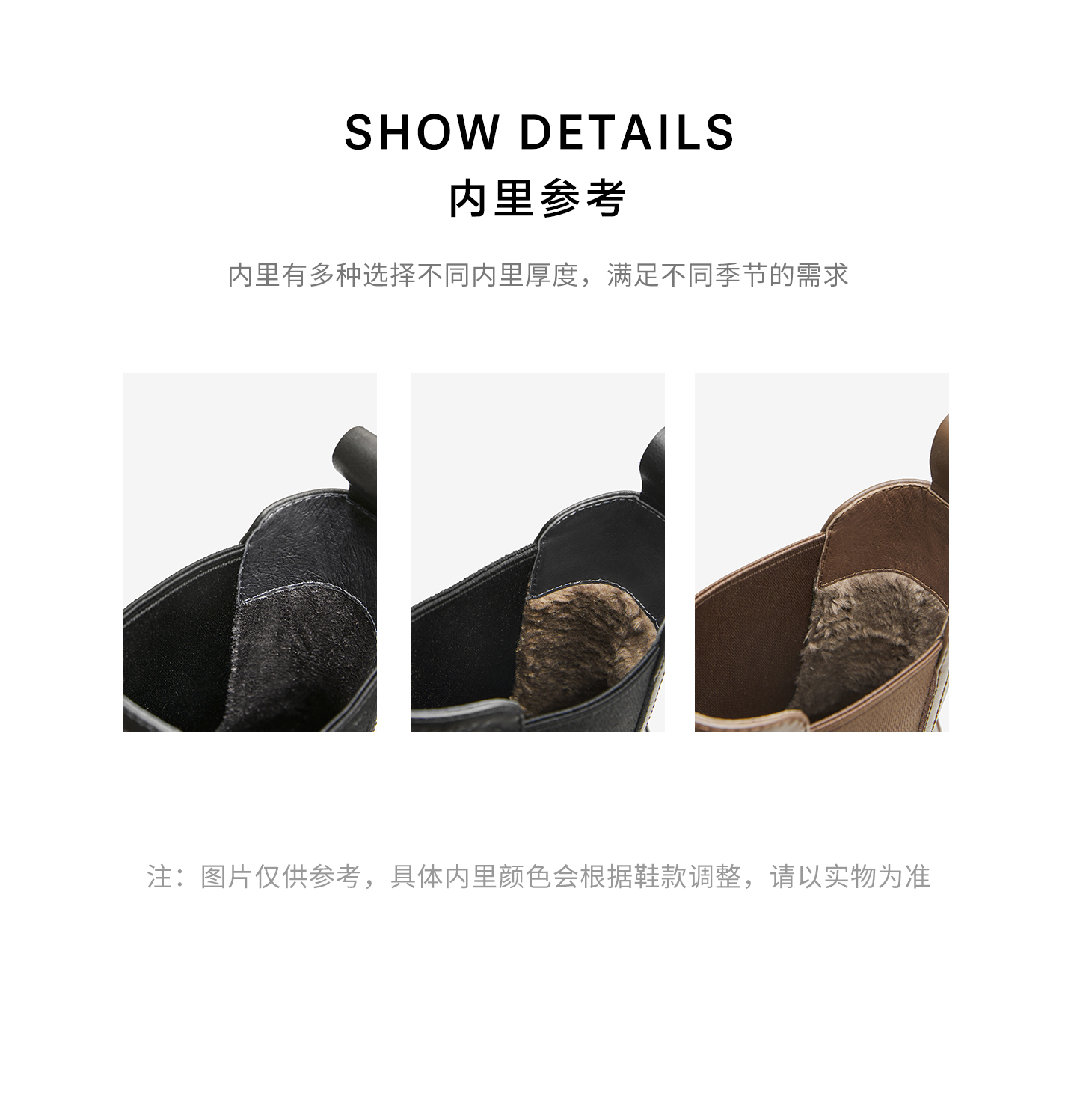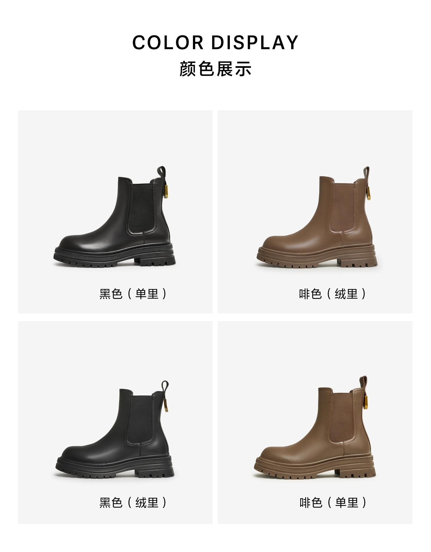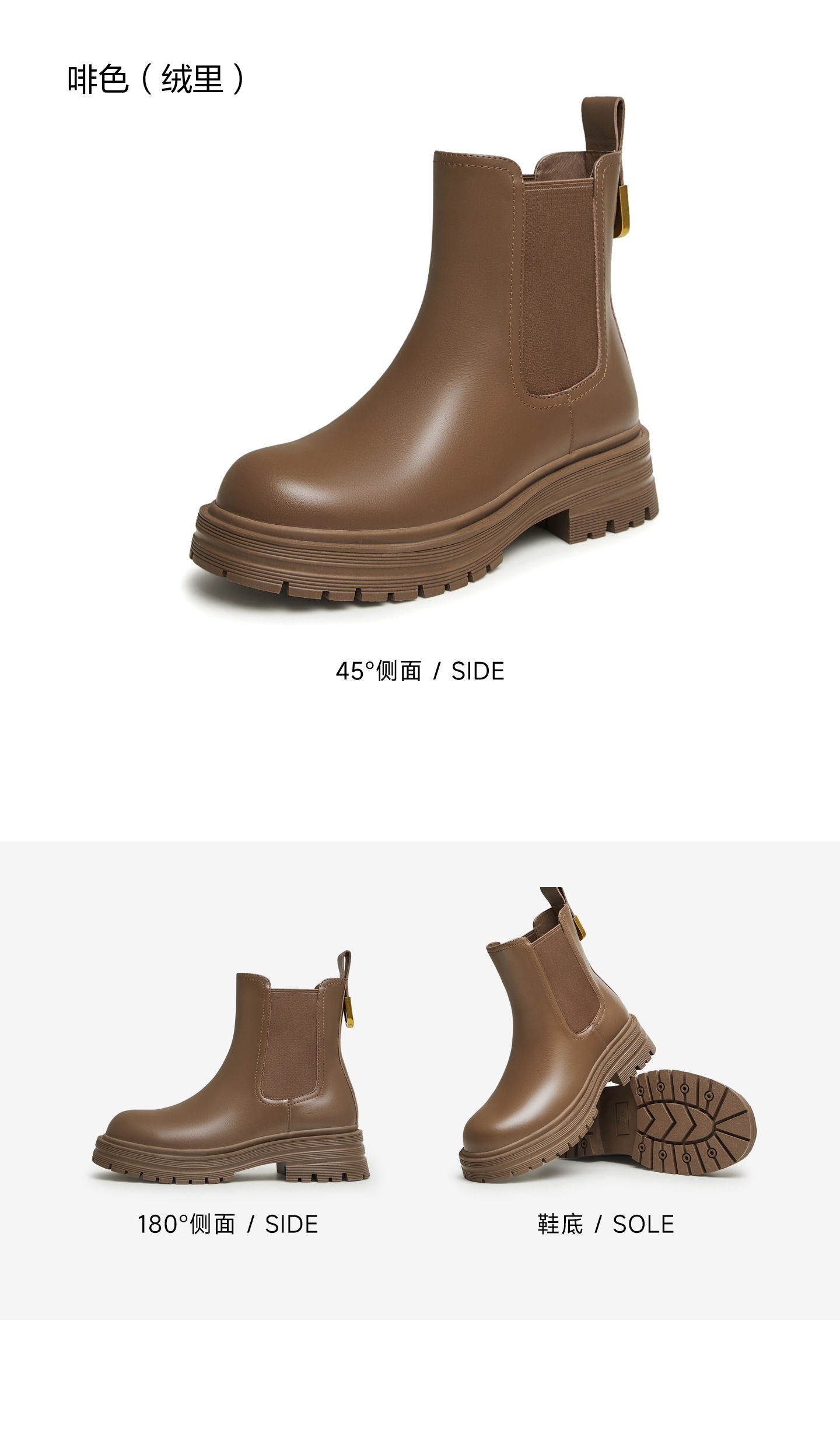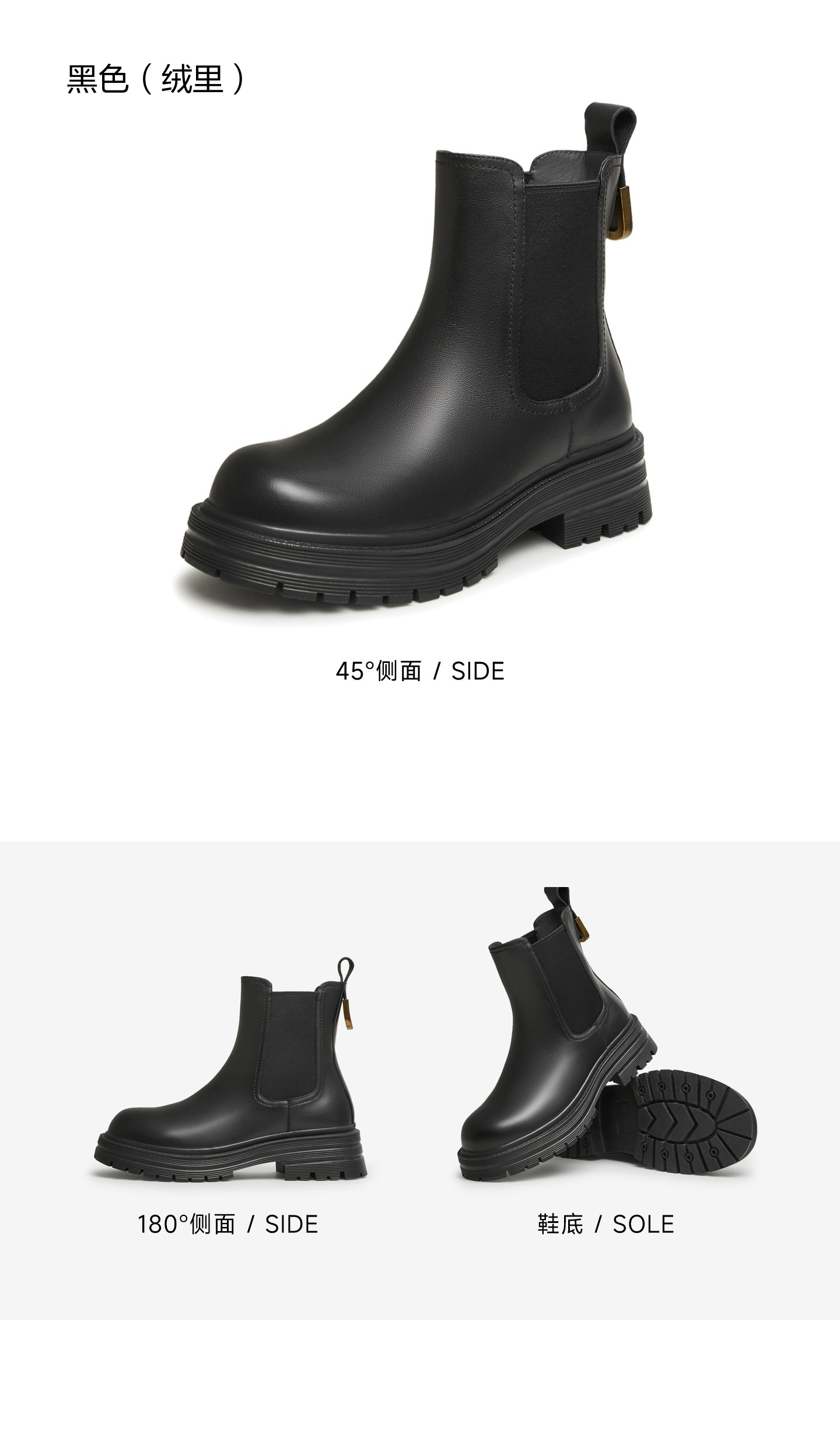 | 帮面材质:织物牛皮革 | 配跟:有 | 靴筒口围:27CM | 上市时间:2024年冬季 | 鞋类流行款式:切尔西靴 |