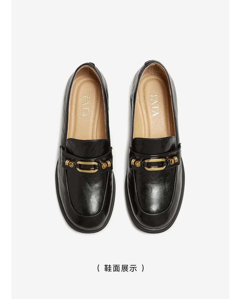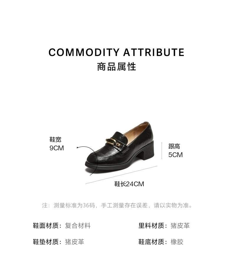 | 配跟:有 | 上市时间:2025年秋季 | 鞋类流行款式:乐福鞋 | 鞋头款式:圆头 | 鞋面图案:纯色 |