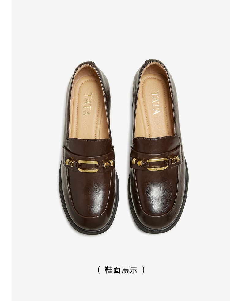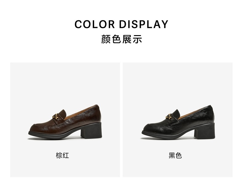 | 配跟:有 | 上市时间:2025年秋季 | 鞋类流行款式:乐福鞋 | 鞋头款式:圆头 | 鞋面图案:纯色 |