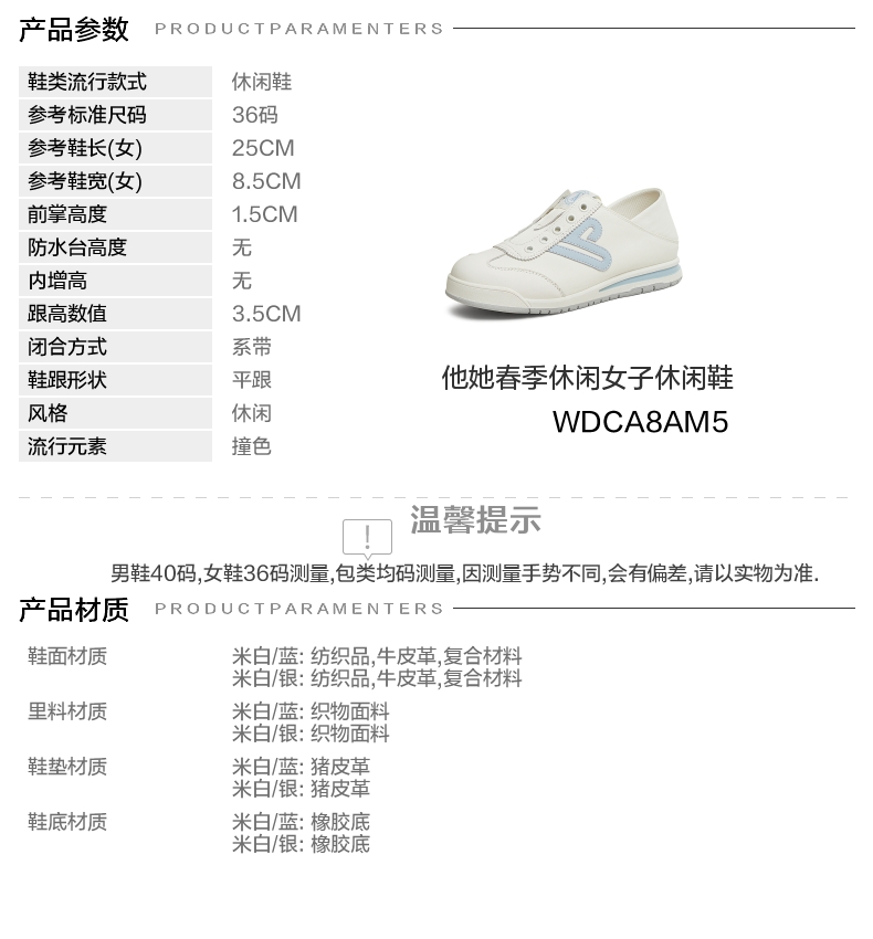 | 参考标准尺码:36码 | 跟高数值:3.5CM | 性别:女子 | 里料材质:织物面料 | 制鞋工艺:胶贴皮鞋 |