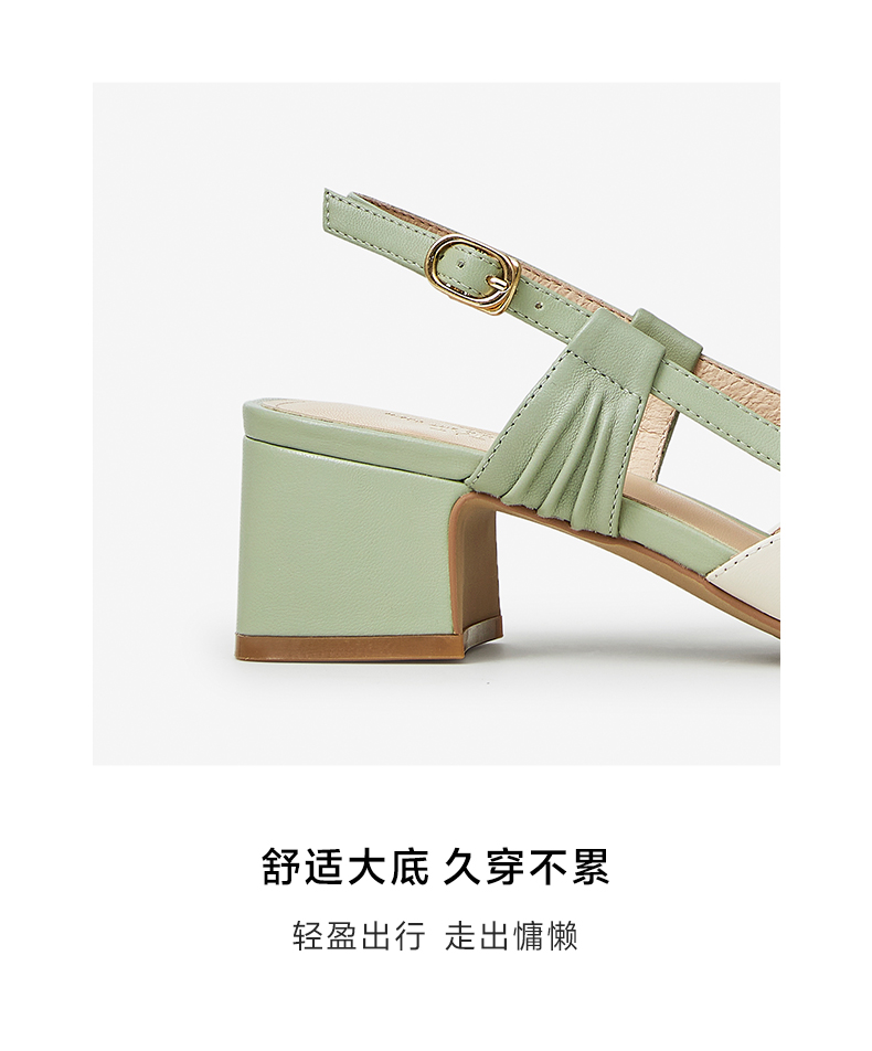 | 执行标准:皮凉鞋GB/T22756-2017 | 跟高范围:中跟鞋(3-5CM) | 鞋面图案:拼色 | 鞋跟形状:方跟 | 流行元素:撞色 |
